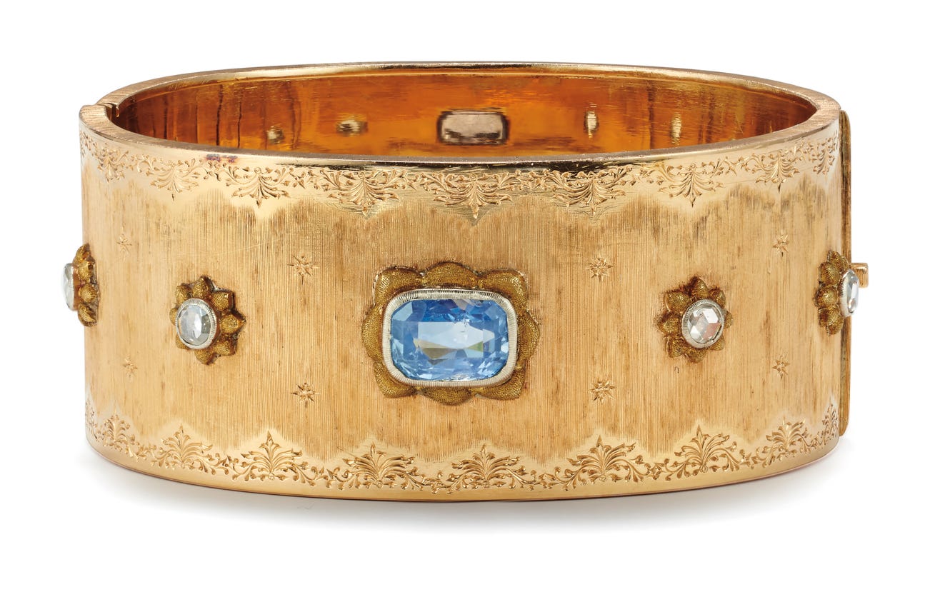 In 1919, Buccellati took over Beltrami and opened a string of boutiques in his own name in Rome, Florence and New York. During his life, he created jewels for the most important collecting families across Europe and papal figures. When Mario passed away in 1965, the business was inherited by his sons Gianmaria and Federico, and today the house continues its tradition of unmistakable design and quality under the management of Andrea Buccellati, Gianmaria's son.