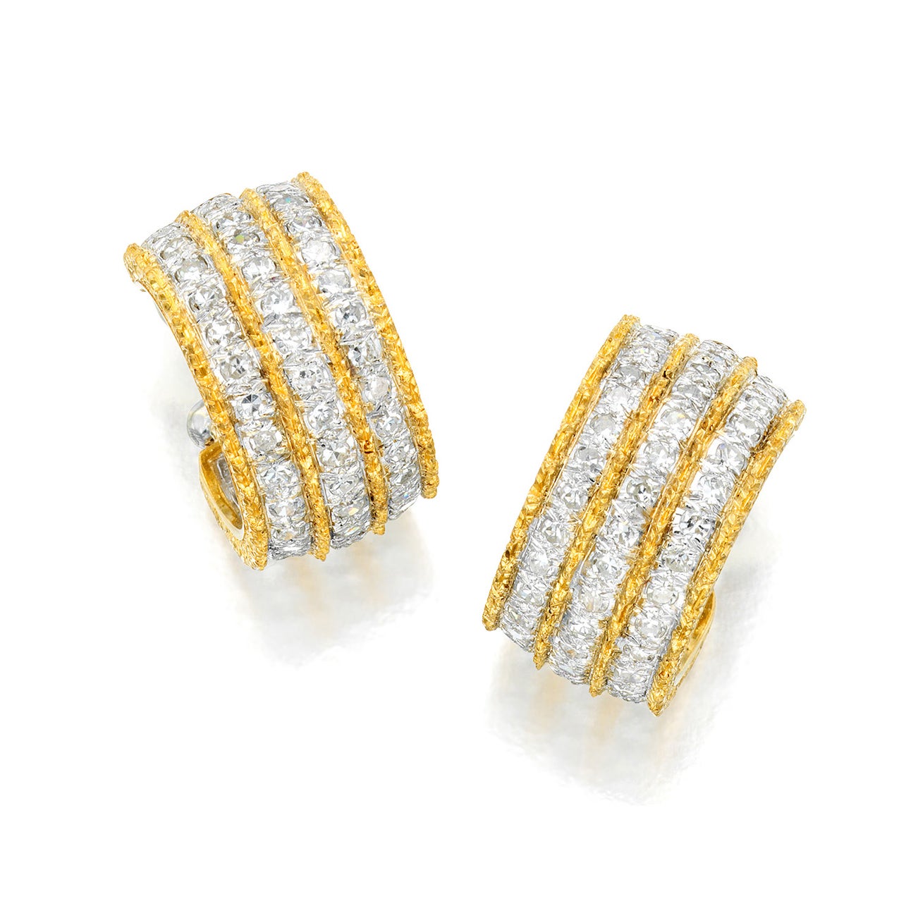 A Pair of Diamond and Bi-Colored Gold Earrings