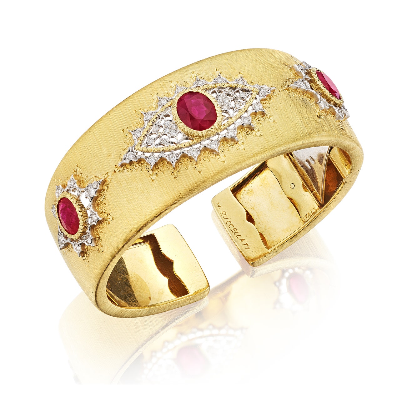In 1919, Buccellati took over Beltrami and opened a string of boutiques in his own name in Rome, Florence and New York. During his life, he created jewels for the most important collecting families across Europe and papal figures. When Mario passed away in 1965, the business was inherited by his sons Gianmaria and Federico, and today the house continues its tradition of unmistakable design and quality under the management of Andrea Buccellati, Gianmaria's son.