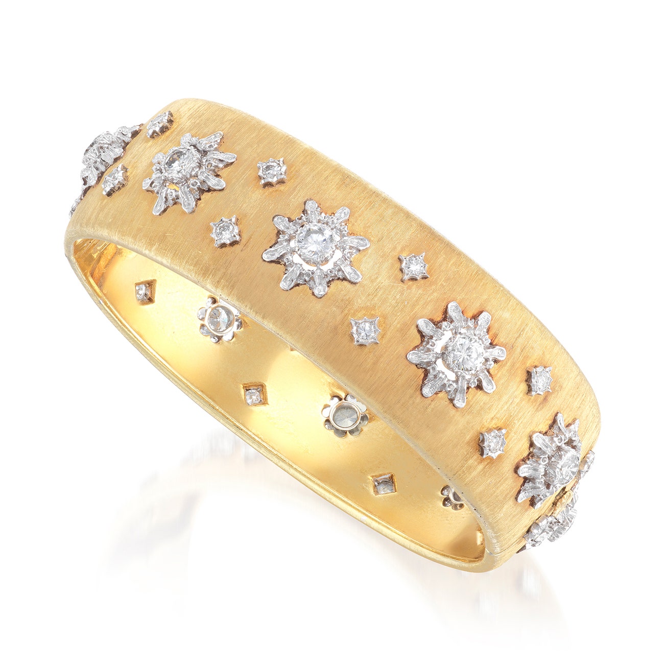 In 1919, Buccellati took over Beltrami and opened a string of boutiques in his own name in Rome, Florence and New York. During his life, he created jewels for the most important collecting families across Europe and papal figures. When Mario passed away in 1965, the business was inherited by his sons Gianmaria and Federico, and today the house continues its tradition of unmistakable design and quality under the management of Andrea Buccellati, Gianmaria's son.