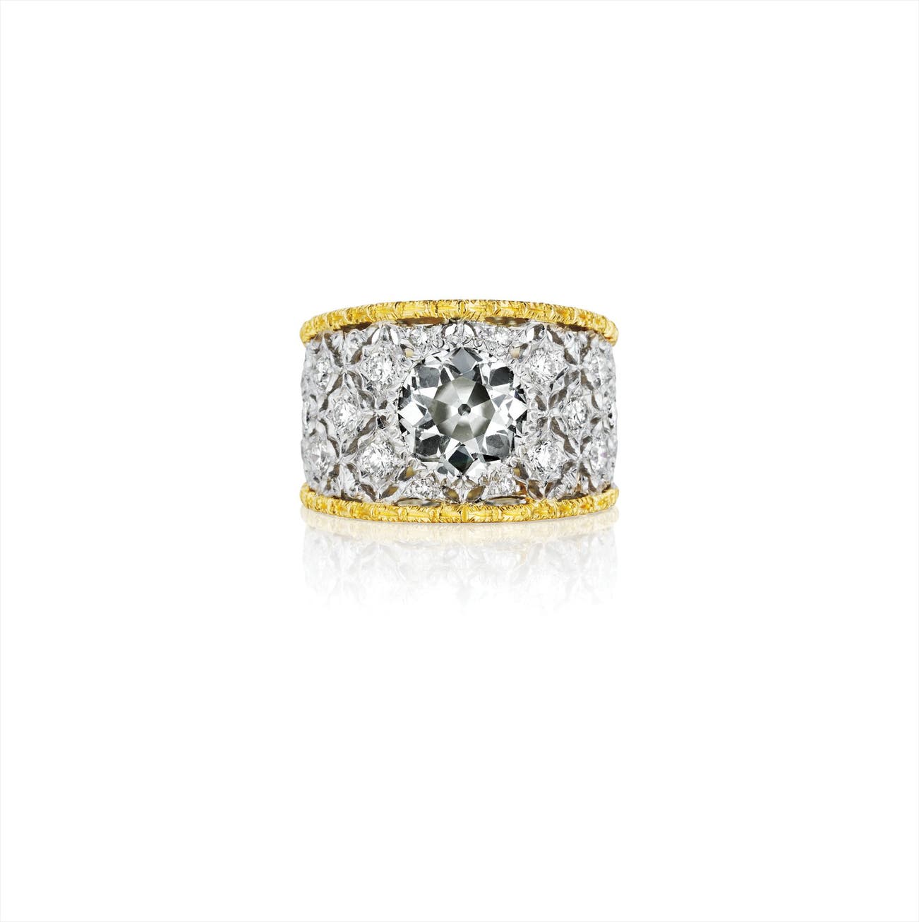 In 1919, Buccellati took over Beltrami and opened a string of boutiques in his own name in Rome, Florence and New York. During his life, he created jewels for the most important collecting families across Europe and papal figures. When Mario passed away in 1965, the business was inherited by his sons Gianmaria and Federico, and today the house continues its tradition of unmistakable design and quality under the management of Andrea Buccellati, Gianmaria's son.