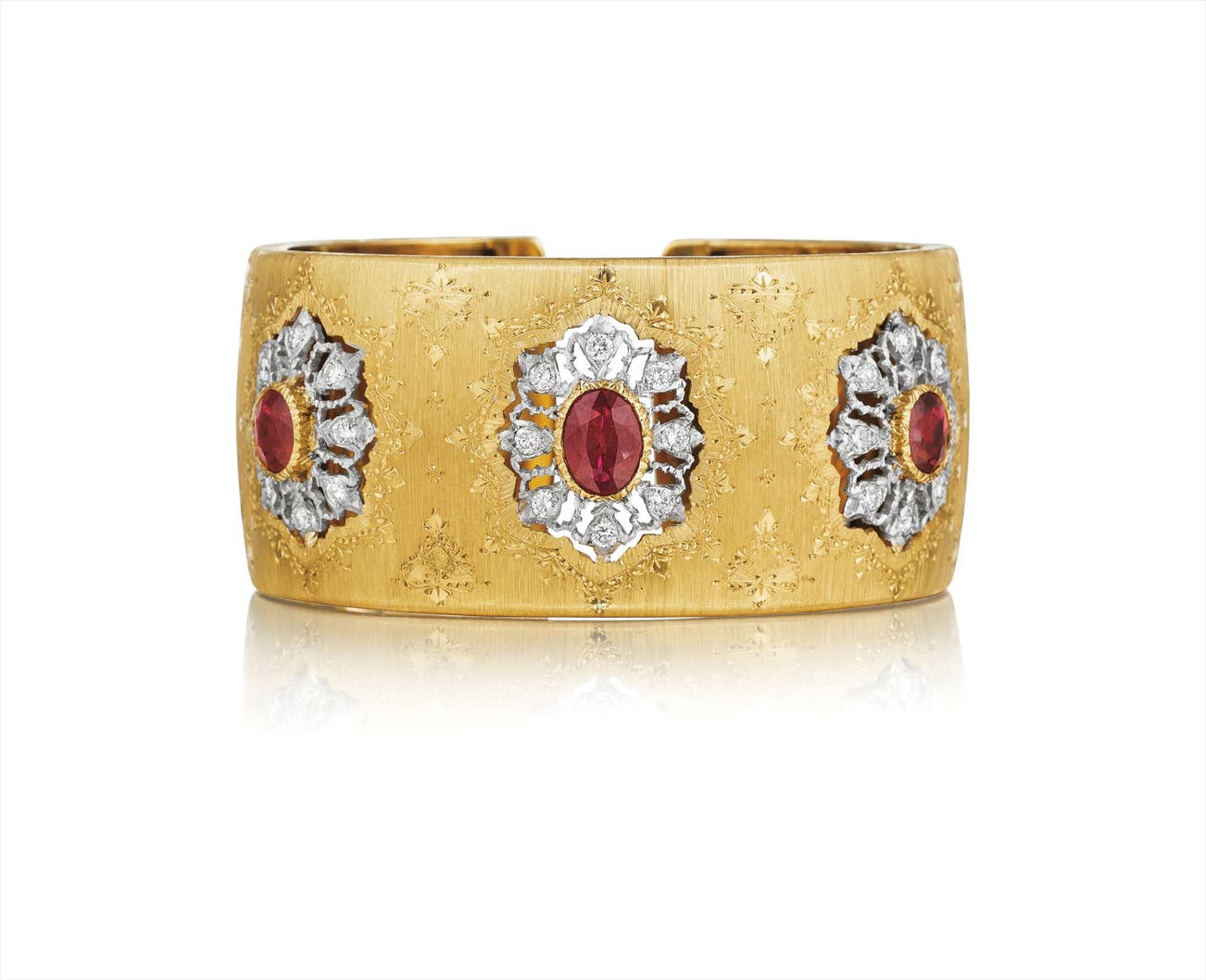 An Important Ruby, Diamond and Gold Cuff Bracelet