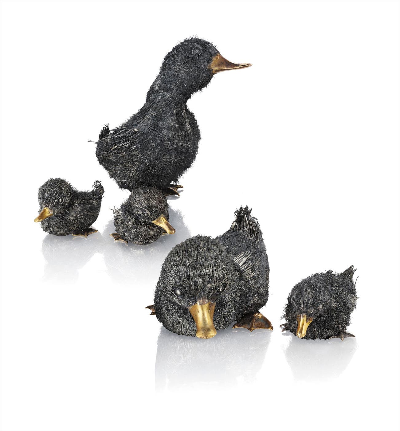 A Set of Silver and Gold Gilt Ducks