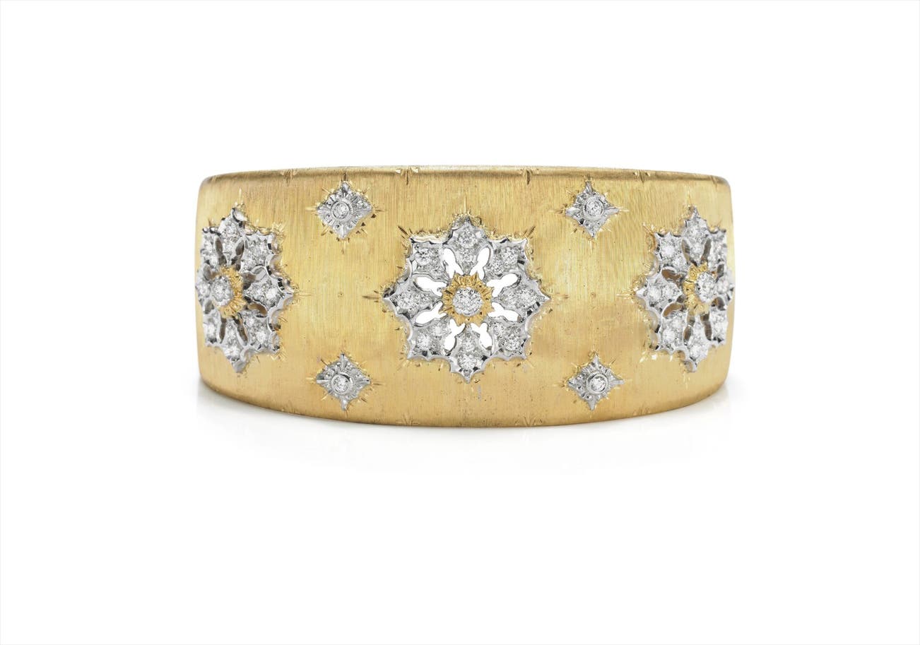 In 1919, Buccellati took over Beltrami and opened a string of boutiques in his own name in Rome, Florence and New York. During his life, he created jewels for the most important collecting families across Europe and papal figures. When Mario passed away in 1965, the business was inherited by his sons Gianmaria and Federico, and today the house continues its tradition of unmistakable design and quality under the management of Andrea Buccellati, Gianmaria's son.