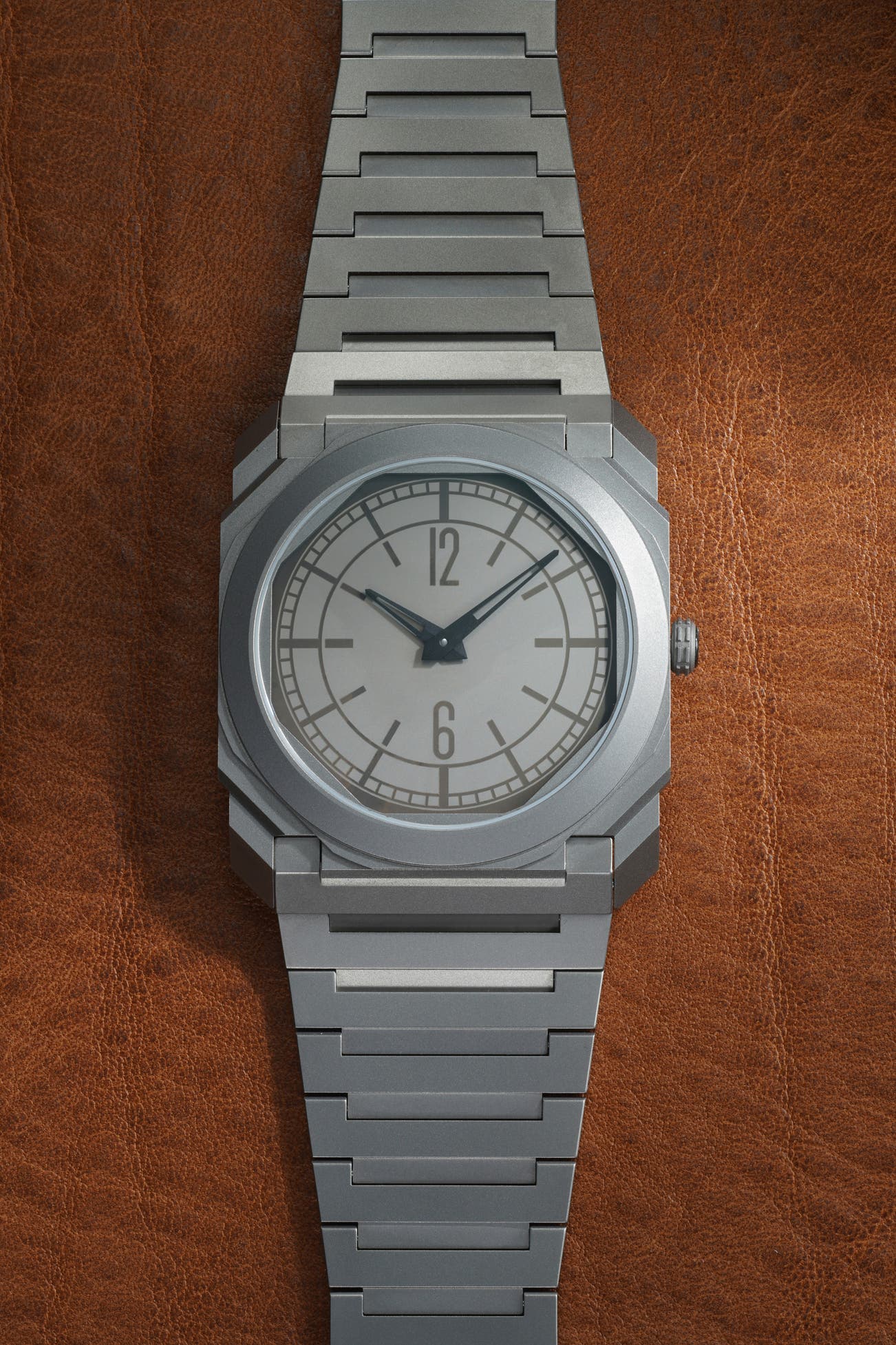 - Launched in late 2022 as a 50 pieces limited edition, the Bulgari X Phillips Octo Finissimo transfigures the model through a sandblasted titanium case matching a titanium dial. A sublime example of elegance, the dial features a sectorial design with railway divisions. The subsidiary seconds - a defining feature of this movement - have been removed in the pursuit of absolute symmetry, making this iteration of the Octo Finissimo the only one without them.