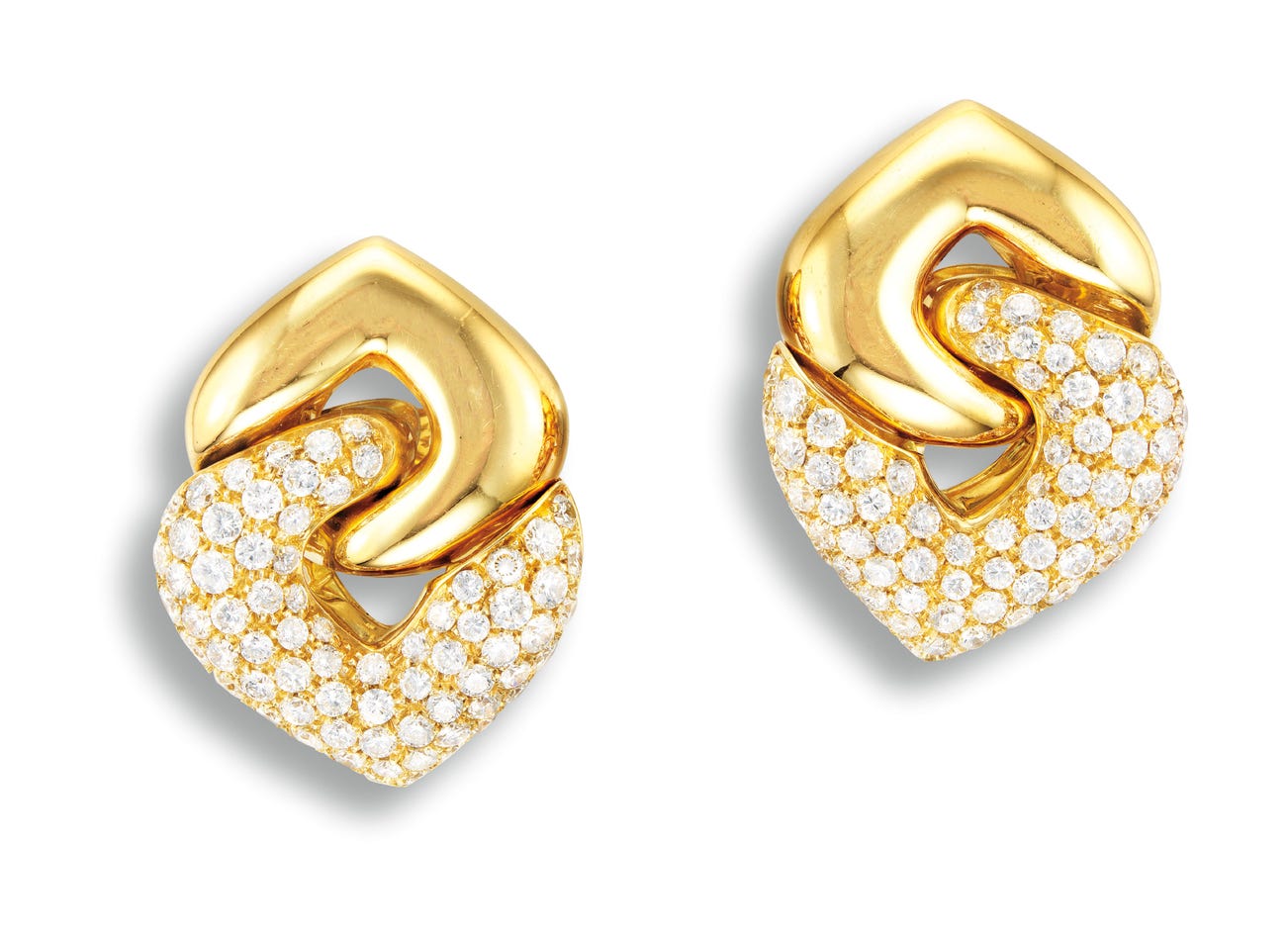 A Pair of Diamond 'Doppio Cuore' Ear Clips, Bulgari