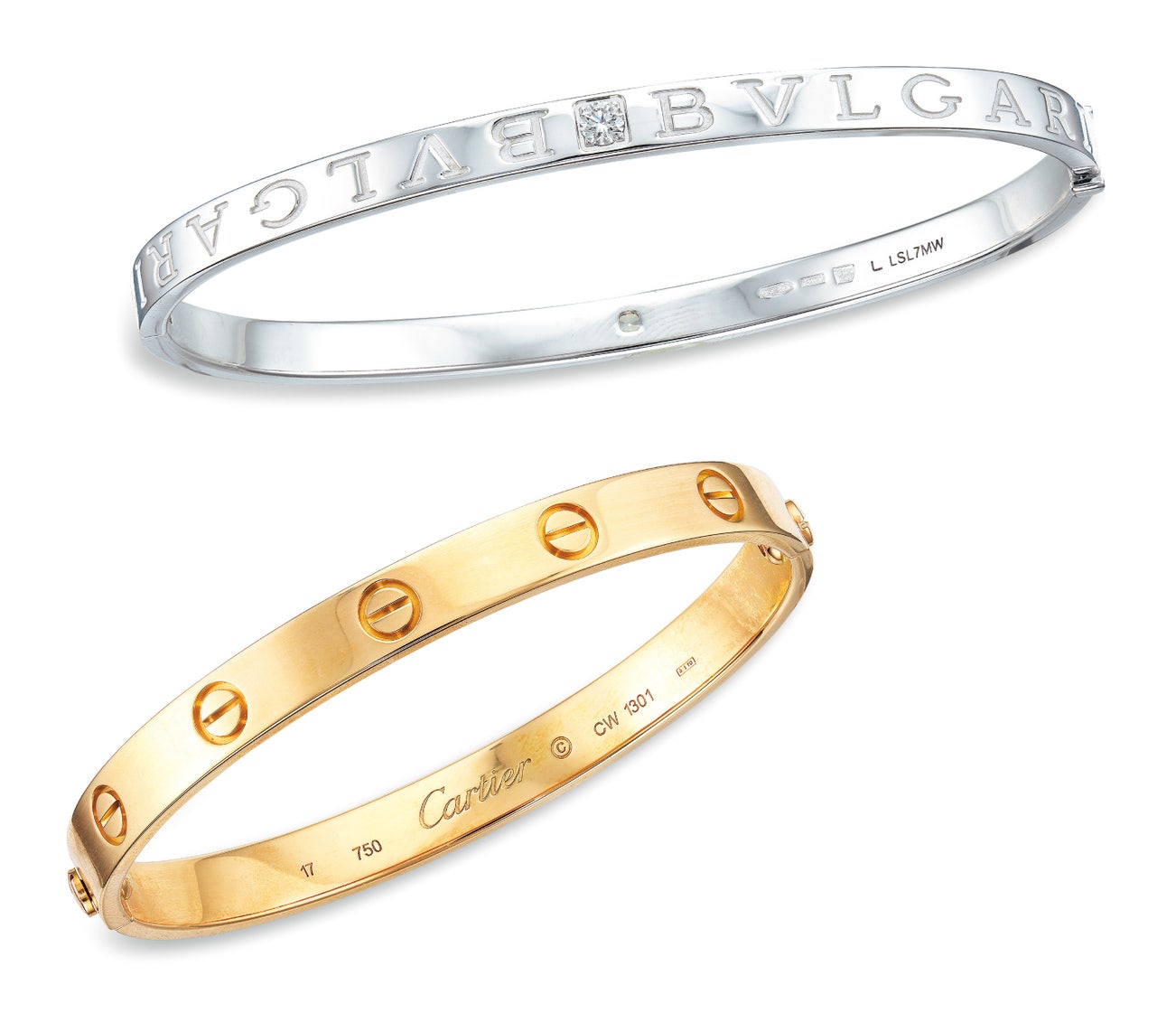 A Karat White Gold and Diamond Bangle, Bulgari; and a Karat Pink Gold 'Love' Bangle, Cartier