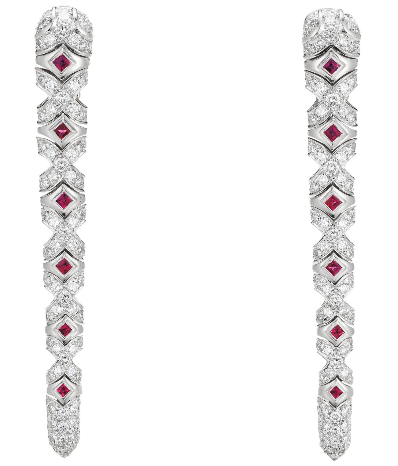 A Pair of Ruby, Diamond, Platinum and Gold Earrings