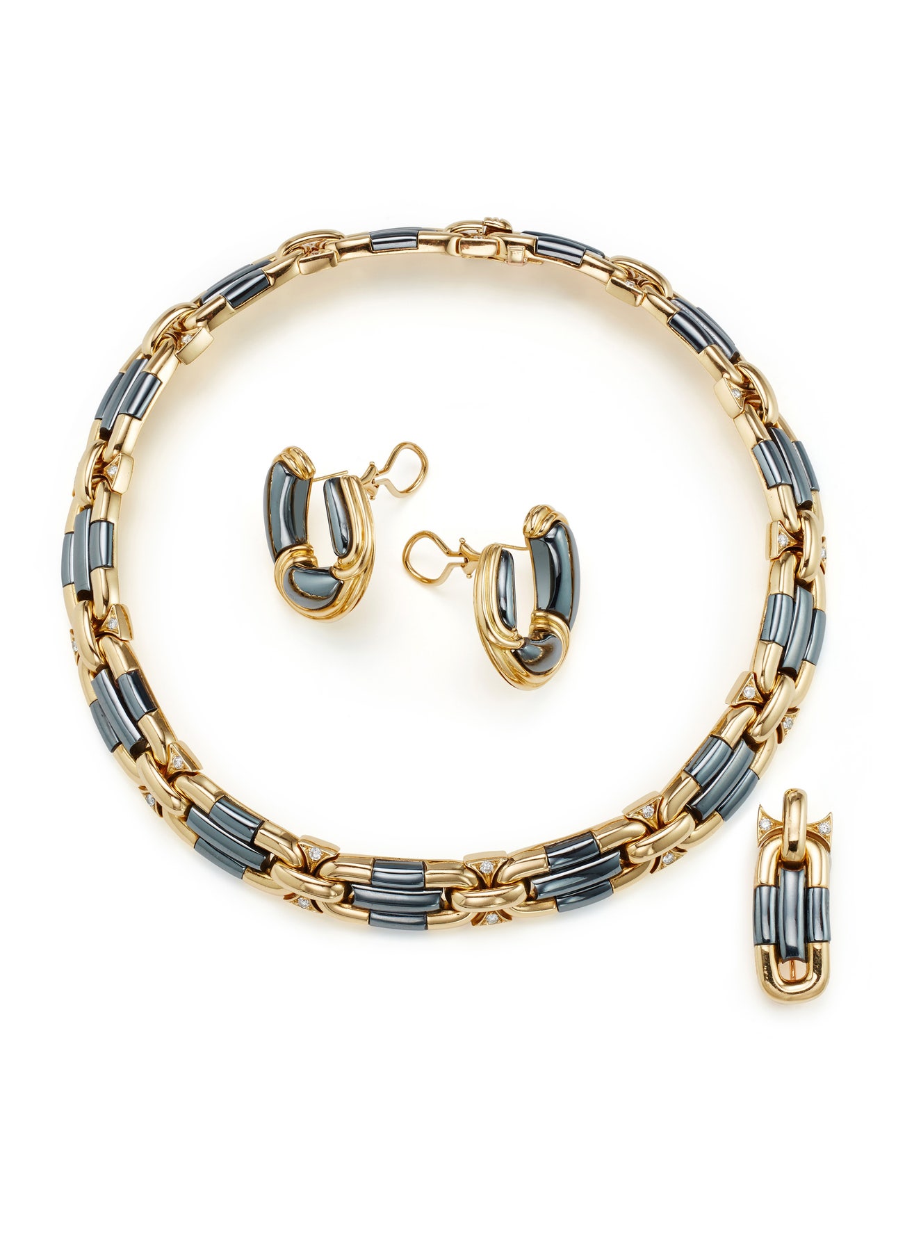A Suite of Hematite, Diamond and Gold Jewelry