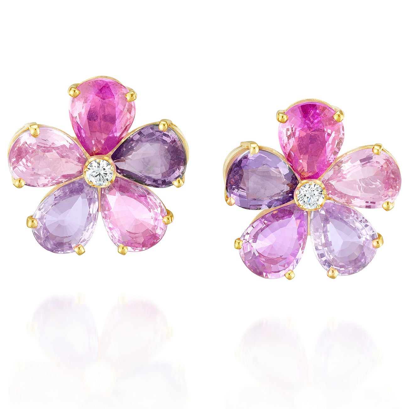 A Pair of Multi-Coloured Sapphire and Diamond Earrings