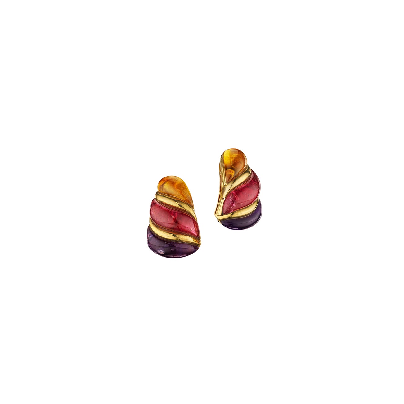 Pair of Citrine, Tourmaline and Amethyst Ear Clips