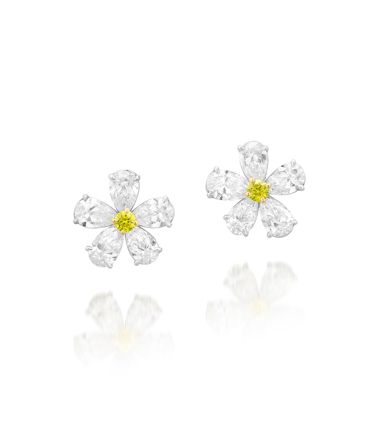 Pair of Fancy Vivid Yellow Diamond and Diamond Ear Studs