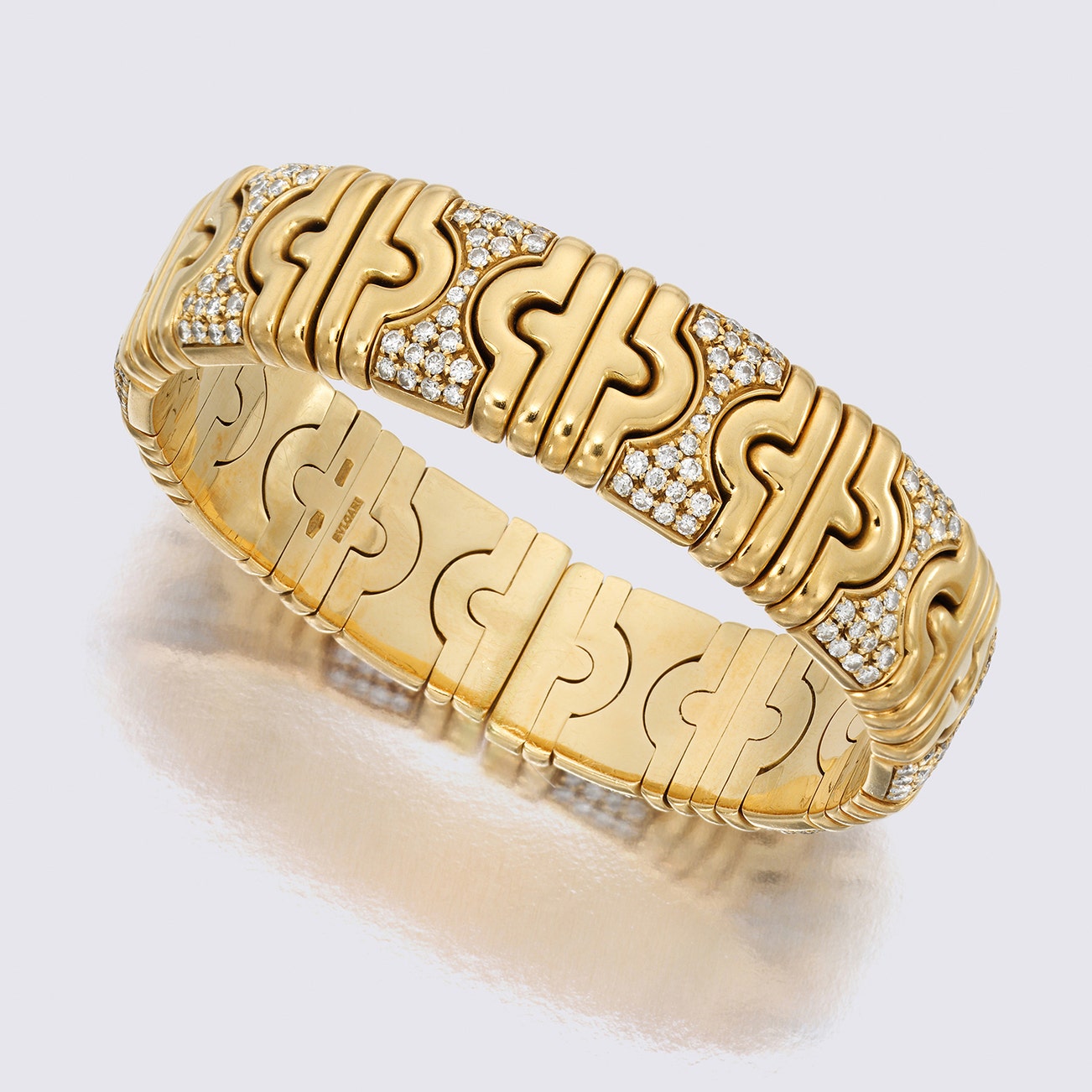 In 1884, Bulgari opened its doors to the Italian people with its offering of jewelry and accessories. Bulgari's style takes from traditions in Greek and Roman craftsmanship to elegantly balance volume and subtlety. Later, in the late 1960s, Bulgari bridged classicism and modernity by introducing its seductive, now-iconic Serpenti collection of snake-shaped coil bracelets and watches. It is through its meticulous combination of influences that Bulgari has garnered an international and loyal high-profile clientele, which included Elizabeth Taylor and Audrey Hepburn. These Hollywood stars have immortalized the house's unique gem-adorned bracelets, necklaces and earrings in rounded forms.