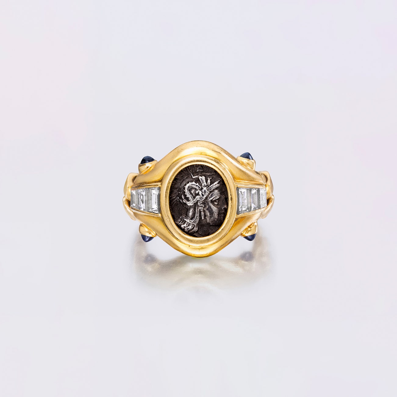 Ancient Coin, Diamond and Sapphire Ring, 'Monete'