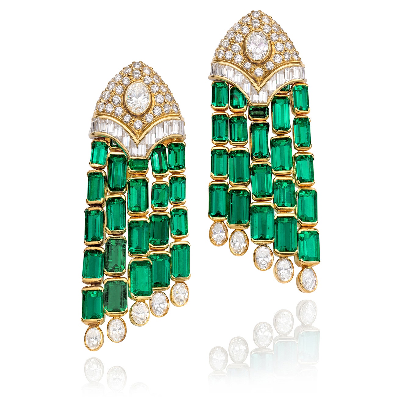 Accompanied by GIA report no. 7235250287, dated 18 April 2024, stating that three emeralds tested are of Colombian origin, with no indications of clarity enhancement.