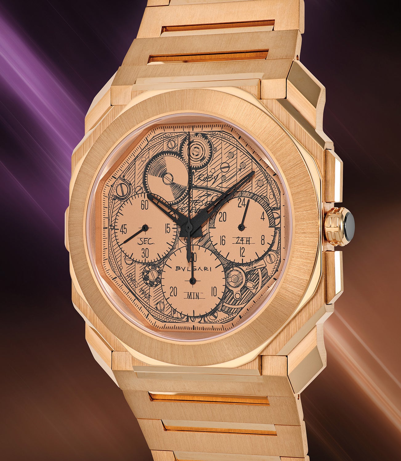 This year, Bulgari celebrates its 140th anniversary. For this special occasion, the Manufacture ventures into uncharted territory as it introduces a series of watches with an illustrated dial, revealing the caliber of each timepiece.