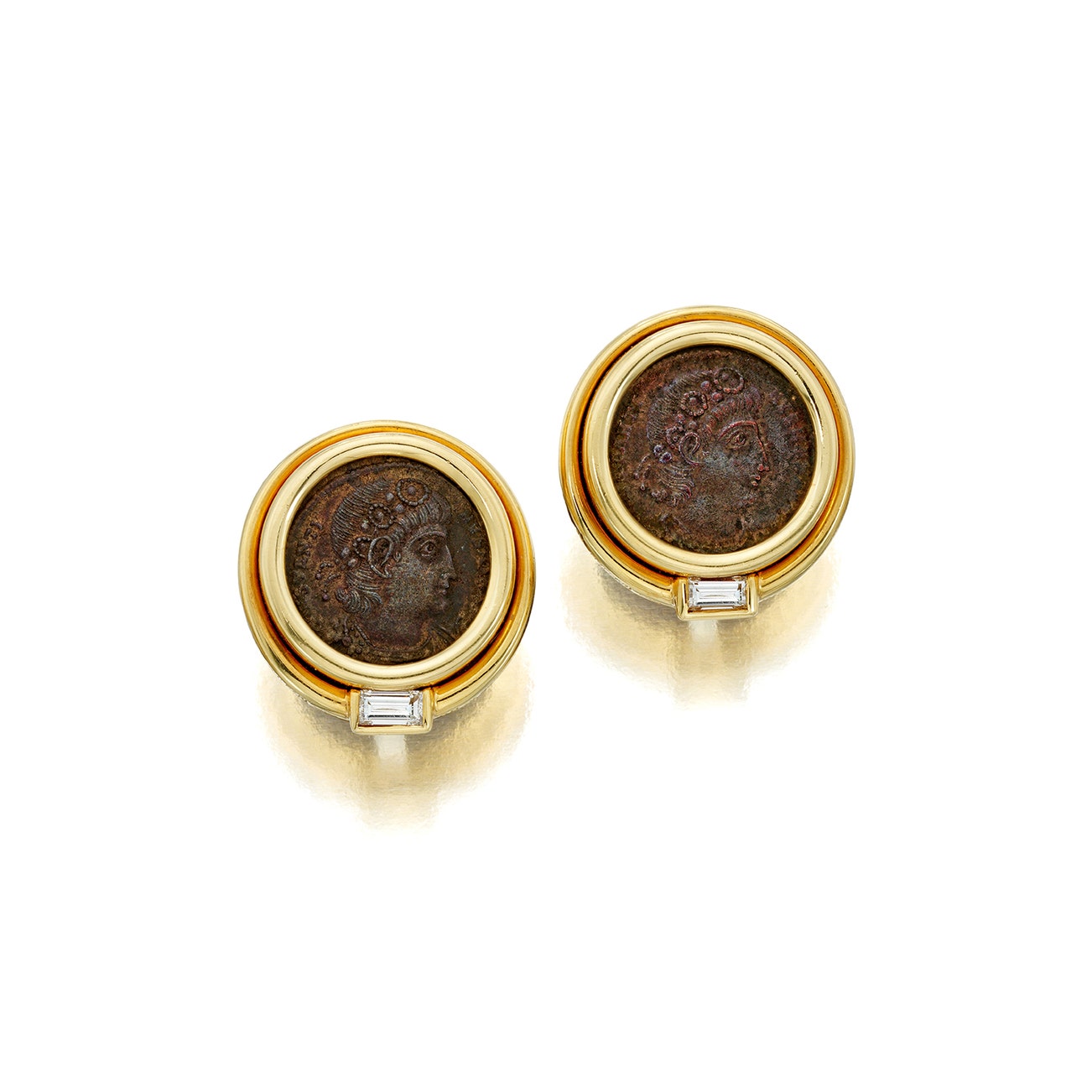 Pair of Coin and Diamond Ear Clips 'Monete'