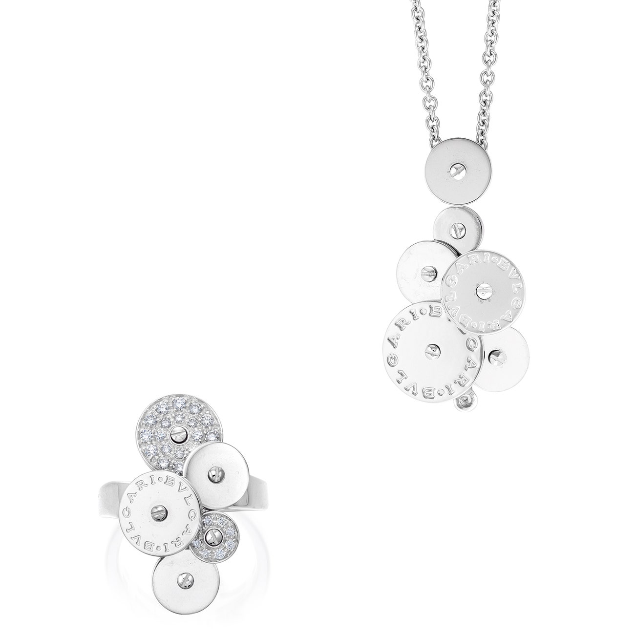 White Gold Pendent Necklace, and White Gold and Diamond Ring, 'Cicladi'