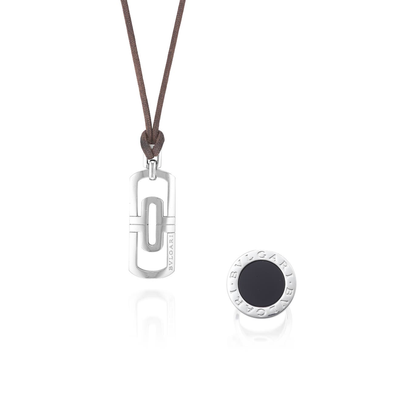 Gold Pendent Necklace, 'Parentesi', and Onyx Ring, 'Bvlgari Bvlgari'