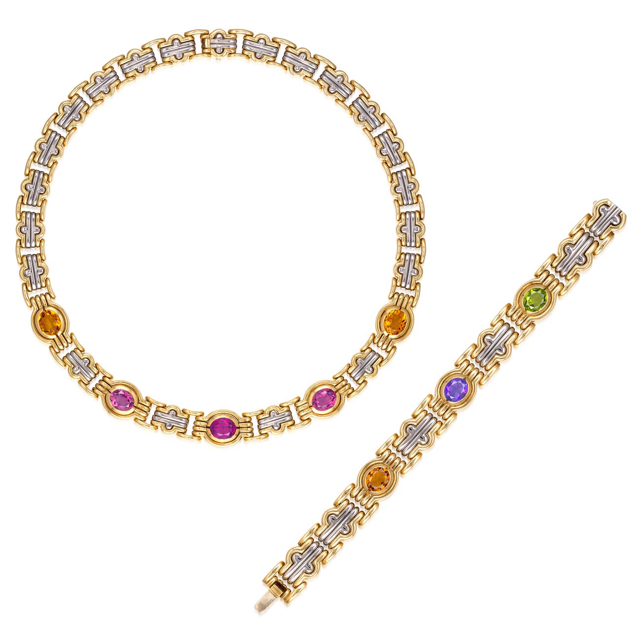 Gem Set Necklace and Bracelet, 'Parentesi'