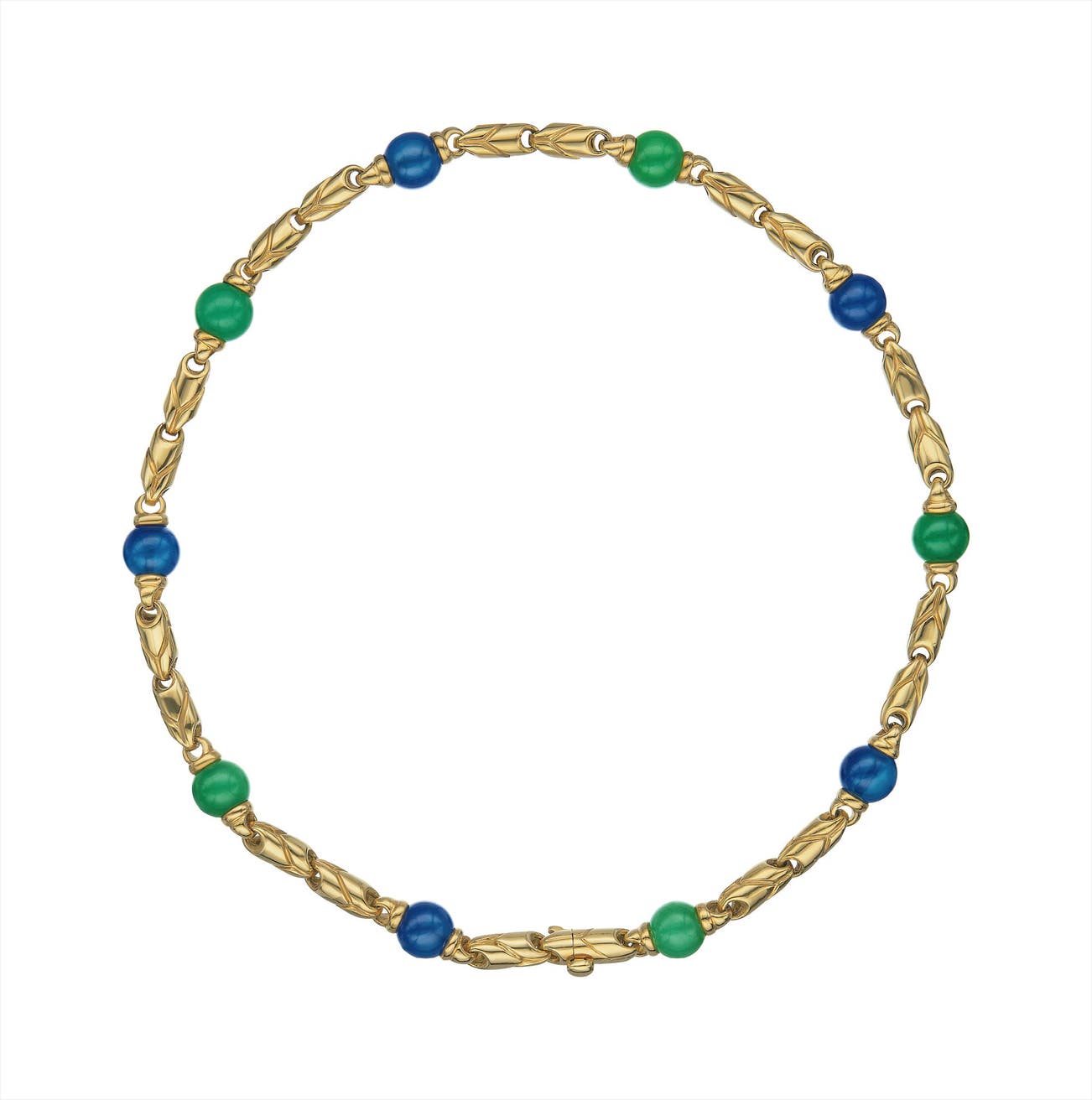 A Gold, Chrysoprase, and Chalcedony Necklace