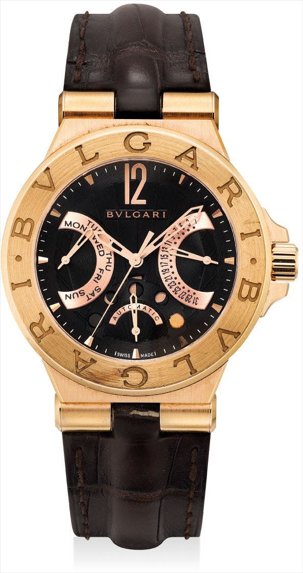 A pink gold limited edition bi-retrograde wristwatch with day, date and moon phases