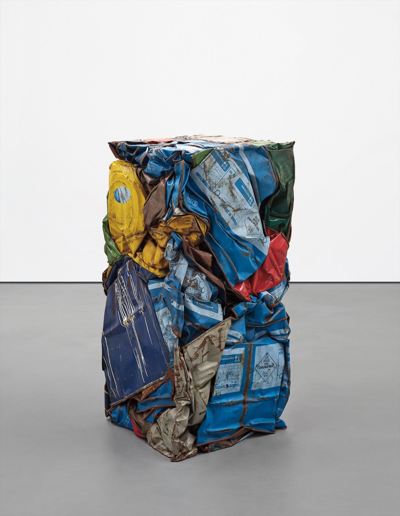 A pivotal member of the Nouveau Réalisme movement, César’s pioneering sculptural work shocked his contemporary audiences through the scale of his totemic sculptures and seemingly unyielding artistic materials. His seminal Compressions series challenged existing notions of sculpture; focusing on materials plucked from the urban and industrial environment which enveloped him and his contemporaries, the artist subverted traditional expectations of medium, form and representation. Created in 1969, the present work was executed one year after César’s influential trip to London, during which he twice visited a scrap yard in Wood Lane, crushing and compressing forty to fifty car doors, alloys, wheel-hubs, bumpers and bonnets. A selection of these works were exhibited at Tate and remain housed in the museum’s permanent collection. The present work is a monumental example of César’s bales of twisted and distorted metal, quintessentially celebrating his continued exploration of scrap as a medium throughout his larger oeuvre.