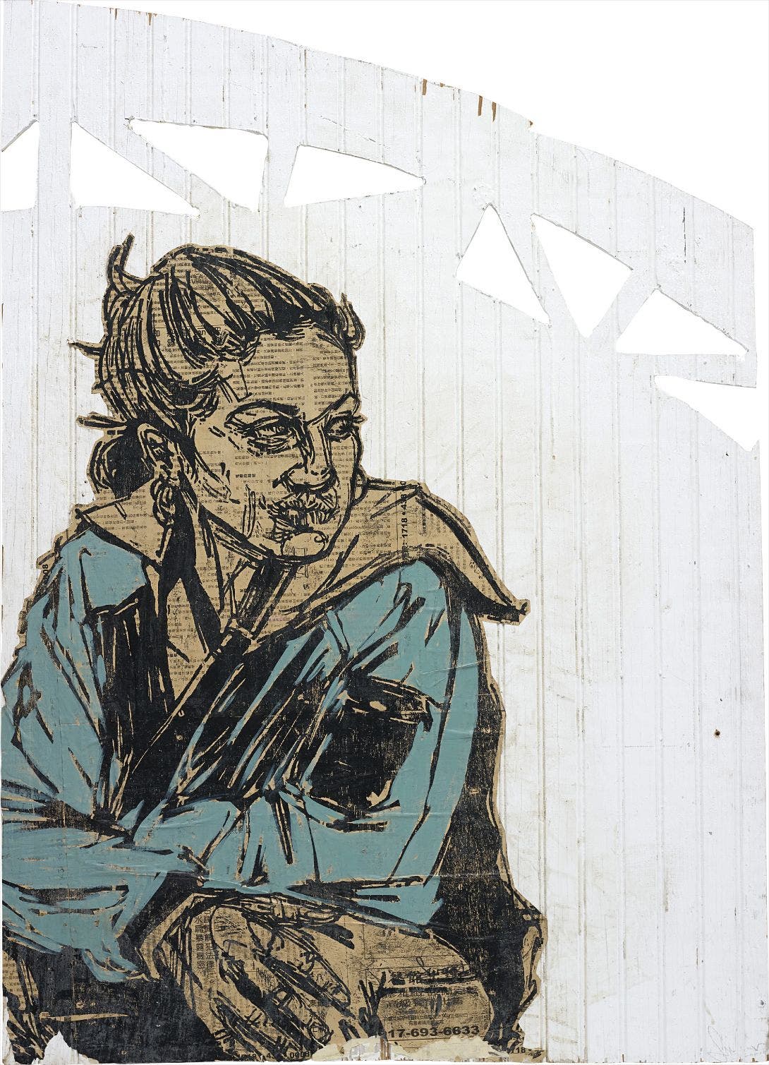 paper collage and paint on wood