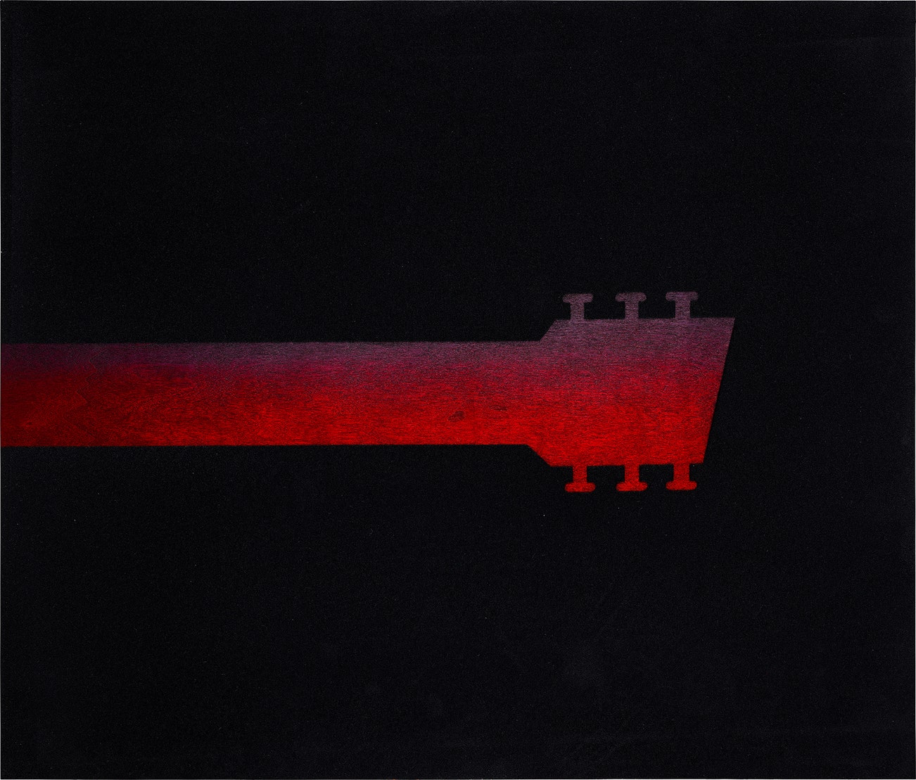 Screenprint in colors with flocking and hand additions in ink, on cherry wood veneer mounted to Rising conservation board, the full sheet (as issued).