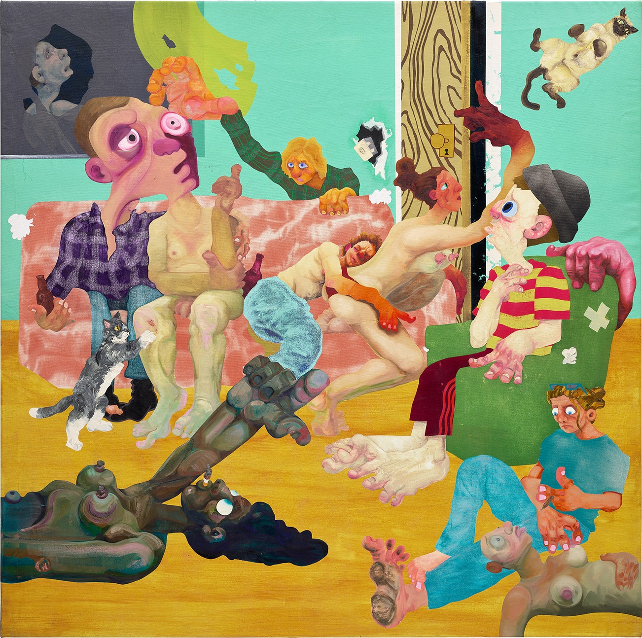 signed, titled and dated "BUTTING HEADS WITH STRAYS 2017 Canyon Castator" on the reverse