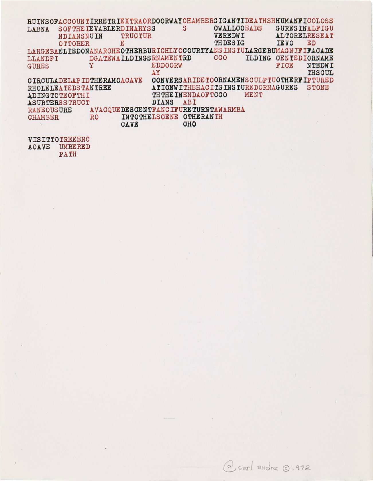 signed and dated "@ carl andre © 1972" lower right; inscribed "YUCA C42 C-12" on the reverse