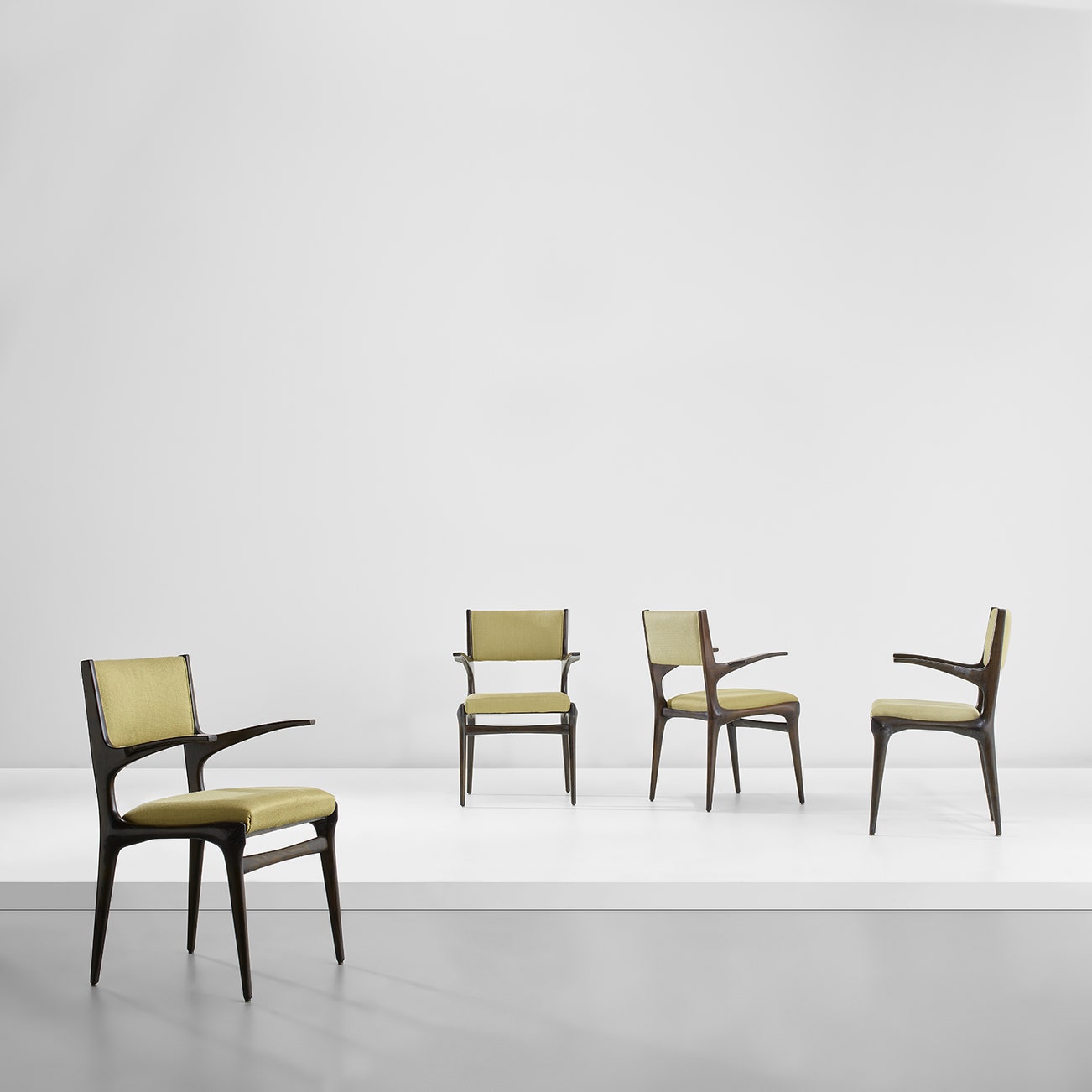 Manufactured by Cassina, Meda, Italy. Underside of three chairs with manufacturer's label printed Figli di Amedeo Cassina/Meda Italy.
