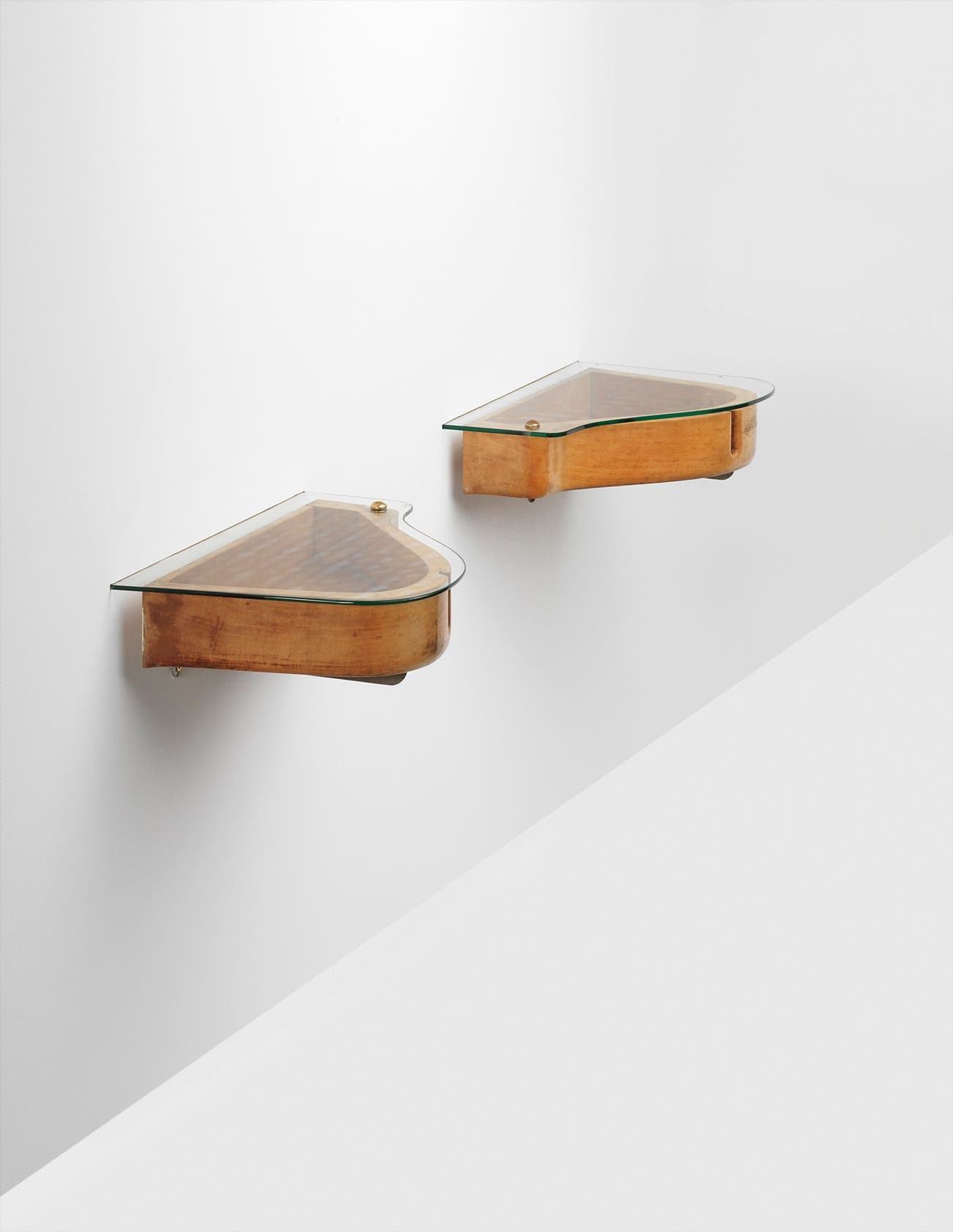 Unique pair of wall-mounted nightstands, designed for the Orengo House, Turin