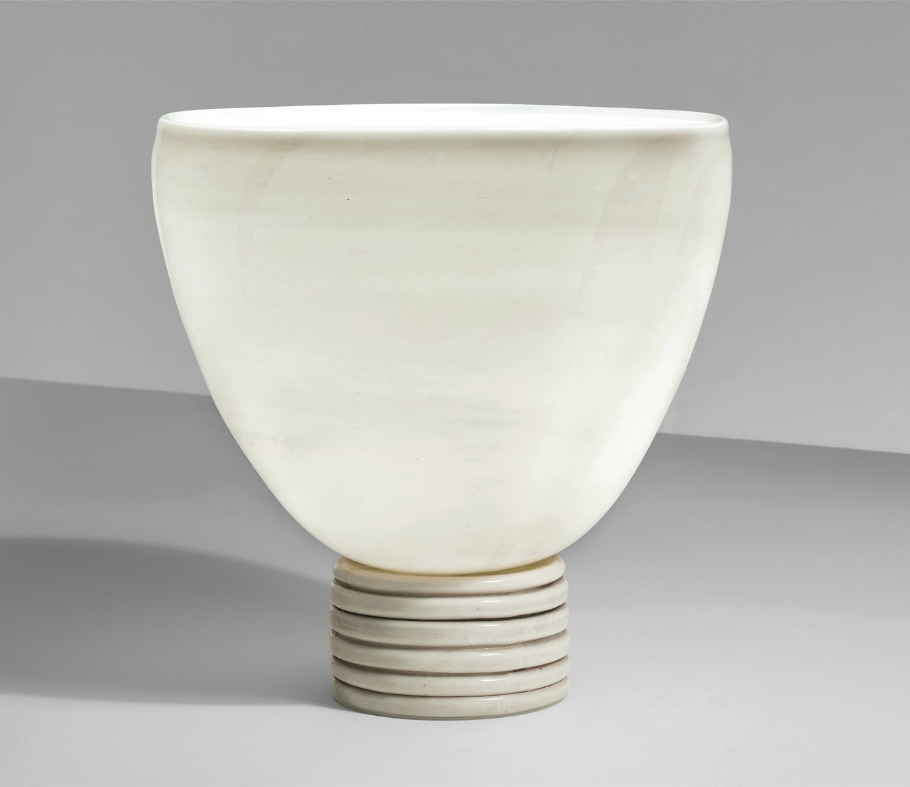 Carlo Scarpa graduated with a degree in architectural drawing from the Accademia di Belle Arti in Venice in 1926. In the years that followed, he worked as a teaching assistant for a former professor, ran his own architectural practice in Venice and worked as a freelance artist for M.V.M. Cappellin glassworks. When M.V.M. Cappellin went bankrupt in 1932, Scarpa joined Venini & C. in Murano, where he served as artistic director until 1947. During his tenure at Venini, Scarpa developed a host of new techniques — in particular, mezza filigrano, a bollicine and corroso — that catapulted the centuries-old tradition of Venetian glassblowing to the forefront of modernist design.
