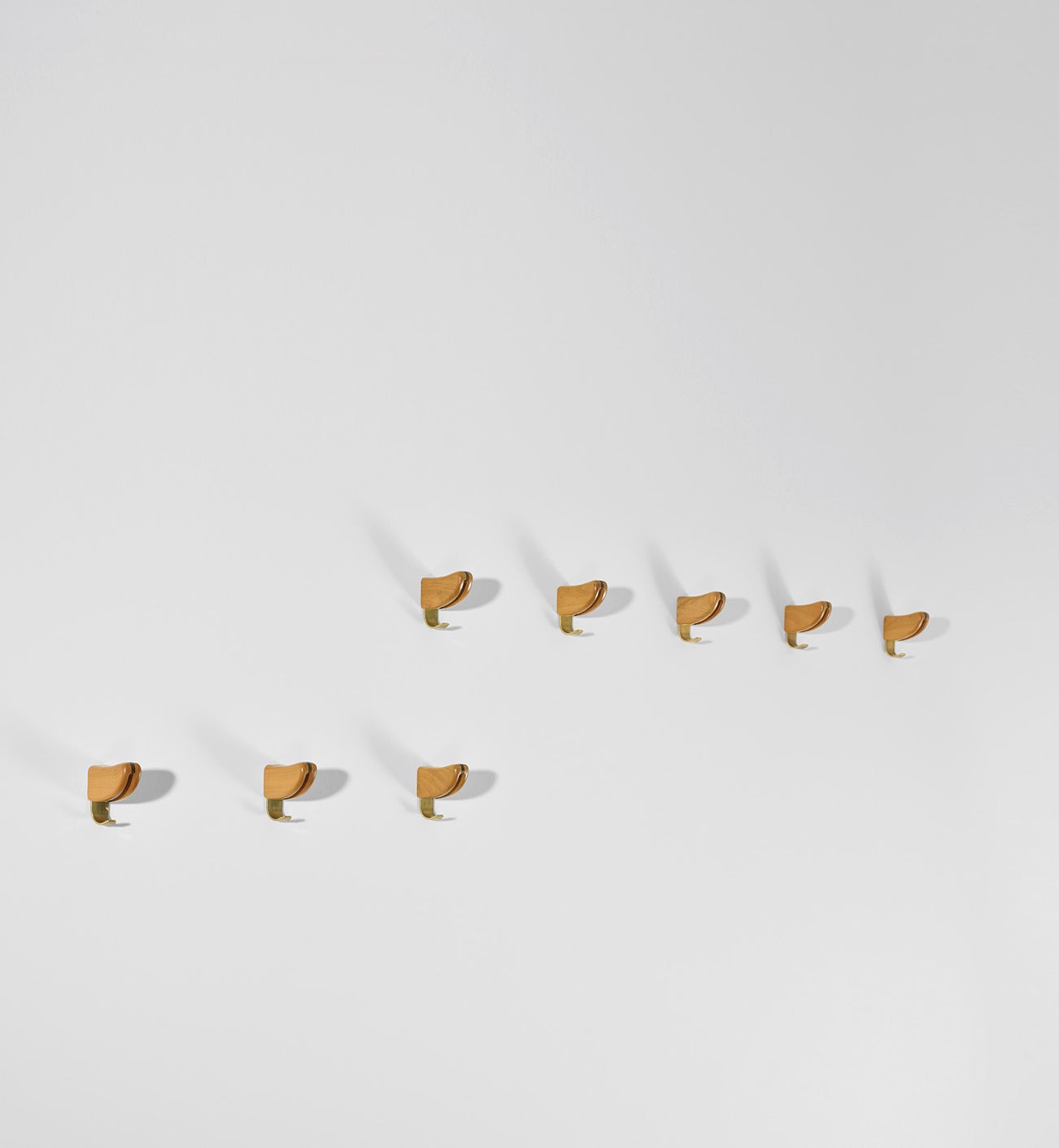 Set of eight wall-mounted coat hangers