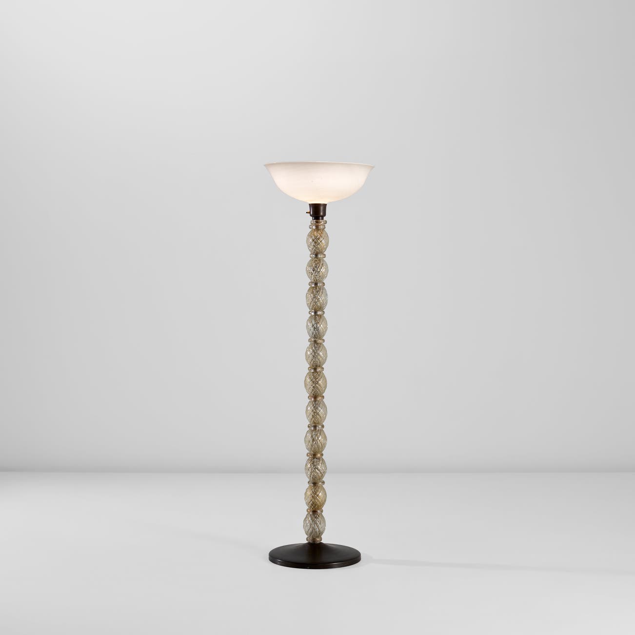 Carlo Scarpa graduated with a degree in architectural drawing from the Accademia di Belle Arti in Venice in 1926. In the years that followed, he worked as a teaching assistant for a former professor, ran his own architectural practice in Venice and worked as a freelance artist for M.V.M. Cappellin glassworks. When M.V.M. Cappellin went bankrupt in 1932, Scarpa joined Venini & C. in Murano, where he served as artistic director until 1947. During his tenure at Venini, Scarpa developed a host of new techniques — in particular, mezza filigrano, a bollicine and corroso — that catapulted the centuries-old tradition of Venetian glassblowing to the forefront of modernist design.