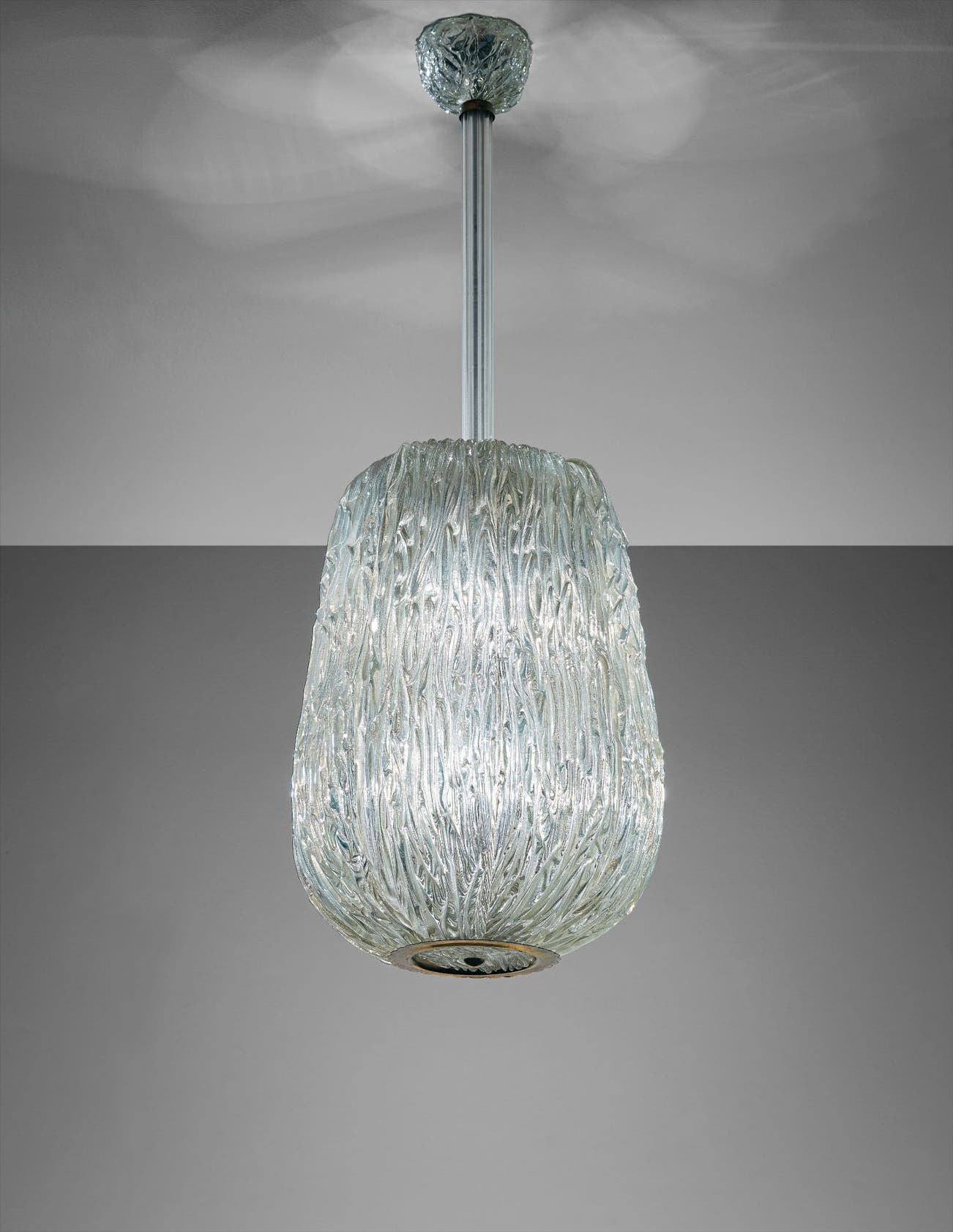 Carlo Scarpa graduated with a degree in architectural drawing from the Accademia di Belle Arti in Venice in 1926. In the years that followed, he worked as a teaching assistant for a former professor, ran his own architectural practice in Venice and worked as a freelance artist for M.V.M. Cappellin glassworks. When M.V.M. Cappellin went bankrupt in 1932, Scarpa joined Venini & C. in Murano, where he served as artistic director until 1947. During his tenure at Venini, Scarpa developed a host of new techniques — in particular, mezza filigrano, a bollicine and corroso — that catapulted the centuries-old tradition of Venetian glassblowing to the forefront of modernist design.