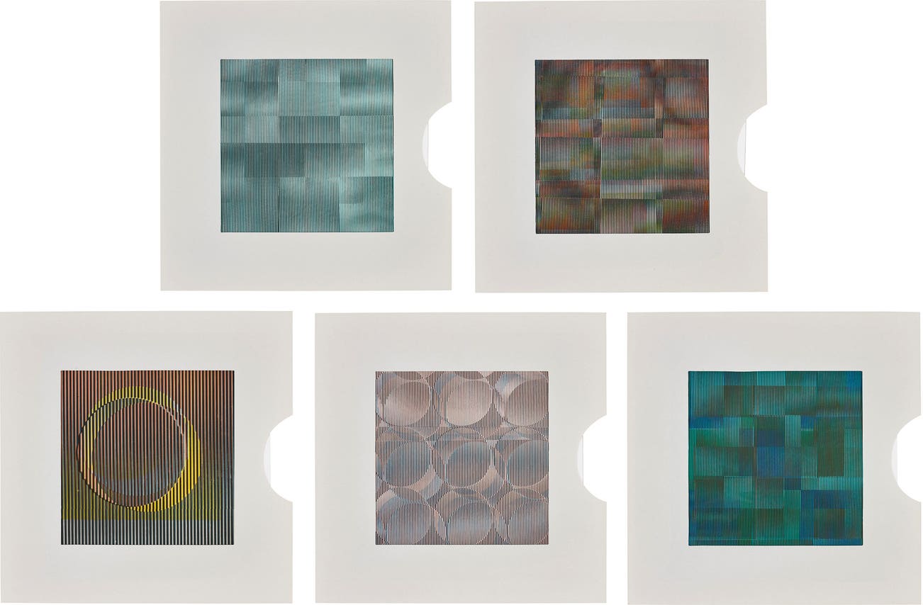 Signed with initials in black ink and stamp-numbered '184' on the colophon, from the edition of 250 (there were also 10 sets reserved for libraries), published by Éditions Denise René, Paris (with their blindstamp), all unframed.