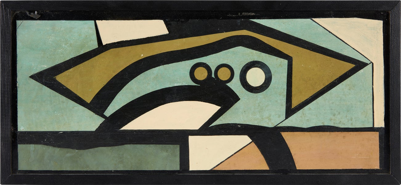 incised with the artist's signature, title, inscription and date "ROI III Arden Quin A.Q. RIO 1942" on the reverse