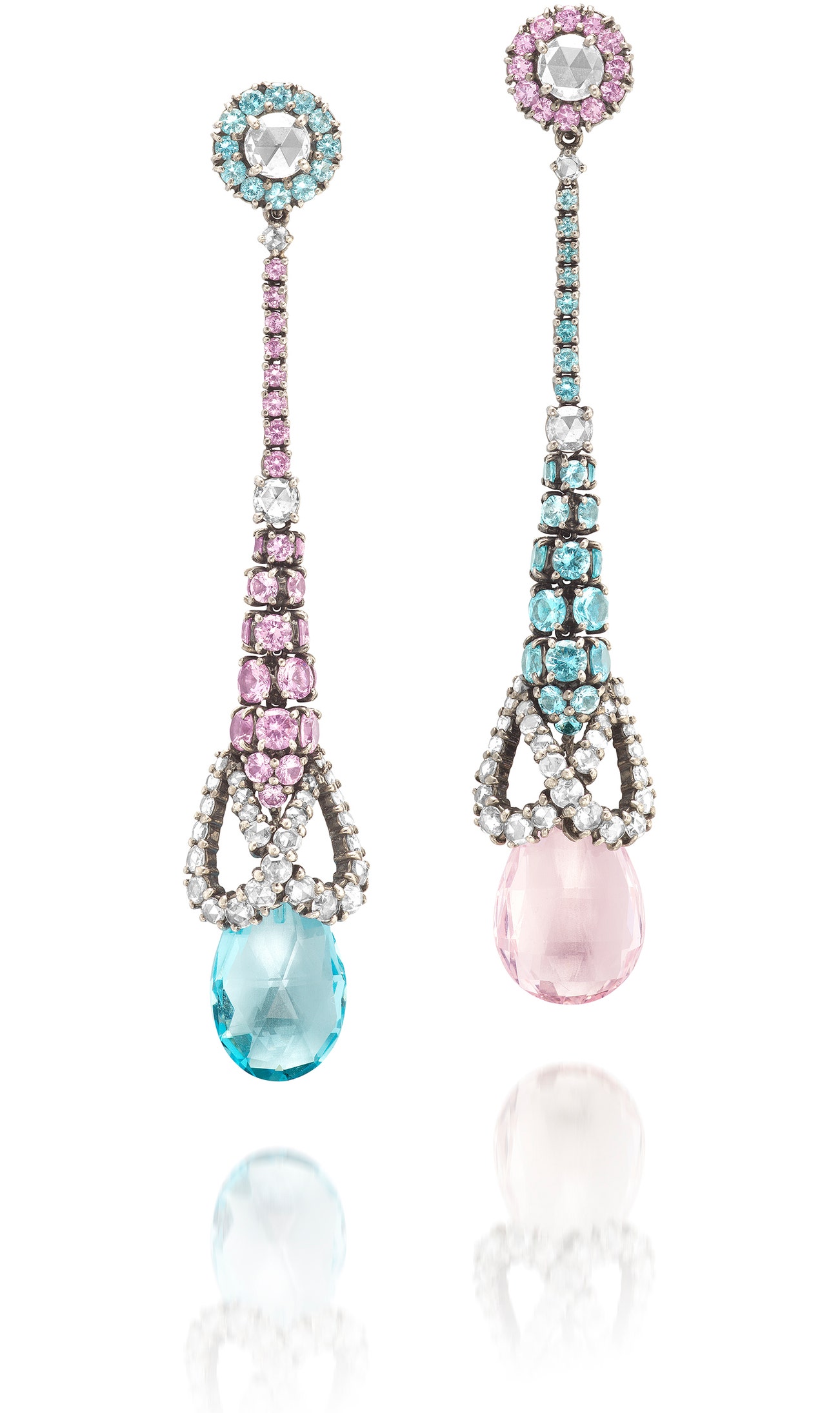 Ong was one of the first, if not the first, to fuse influences and inspirations from East and West, that grew out of her background, her Hong Kong Chinese roots, and her own love of European art and culture. In her signature creations, Oriental dragons, floating clouds and shapely gourds mingle with antique lace and brocade, glimpsed in a 17th-century portrait, all channelled through European jewellery-making techniques. Ong was instrumental in reviving the use of rose-cut diamonds, applying this early European cut to coloured gems, and exploring the play of light in custom-cut rondelles and briolettes. Contemporary femininity is the essence of Ong’s style and identity; she balances power and presence with lightness and fluidity. Her diamond jewels that recreate organdie or tulle float like silk on the skin, while her spectacular drop earrings cascade with light, colour, and movement. She is equally renowned for her use of intense colour, particularly in monumental brooches, sculpted as flowers, fruit, or feathers, and for her imaginatively bejewelled watches, created to complement her jewels, and intensity their glamour.
