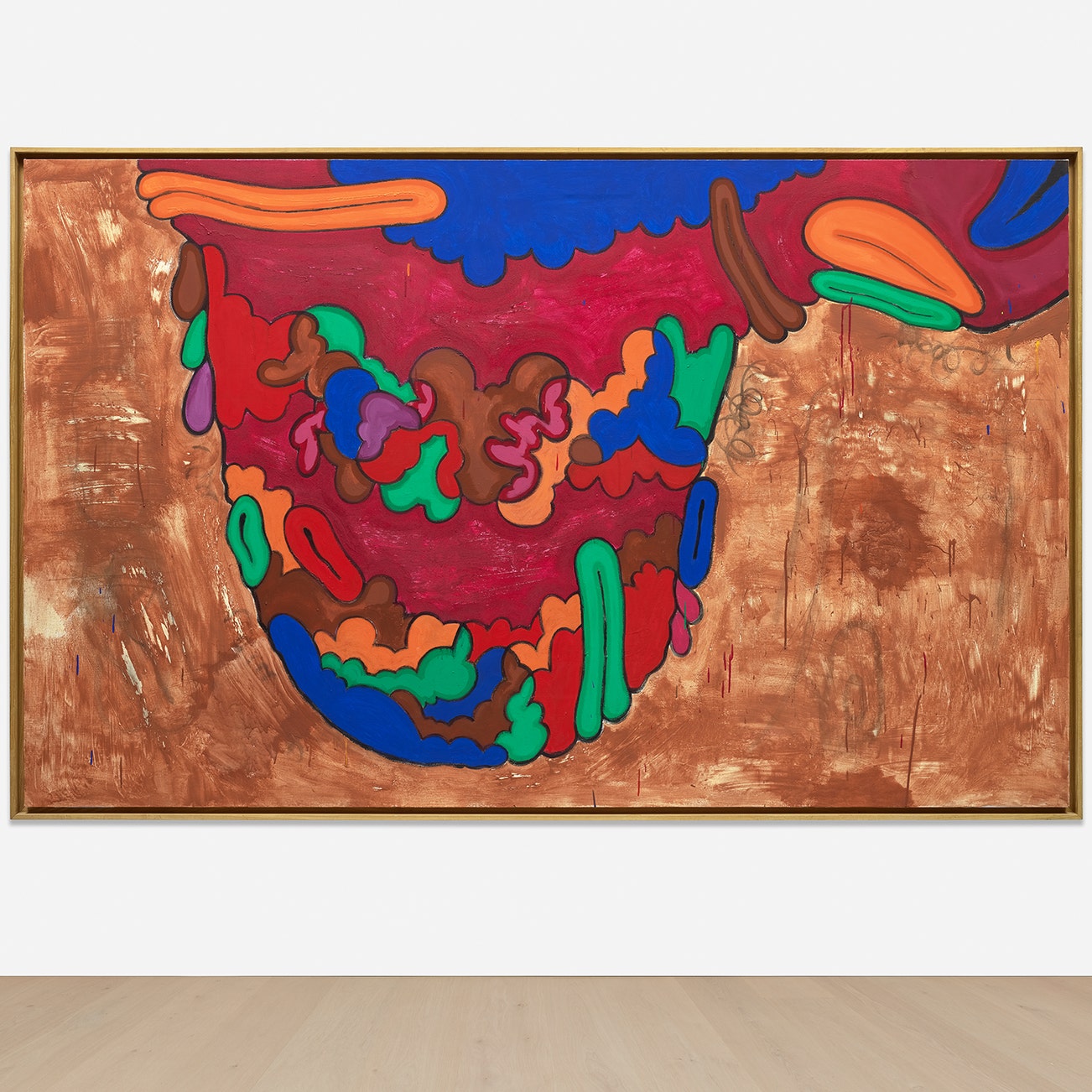 signed and dated "July, August, September and July-October, 1992 Carroll Dunham" center right; signed, titled, inscribed and dated "Hampton-Bays-NYC 1992 "DOWN" Mound E" on the stretcher