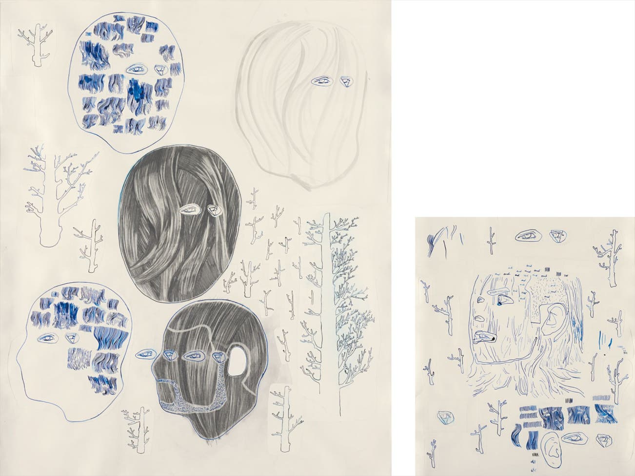 diptych: blue and black acrylic ink and paper on paper
