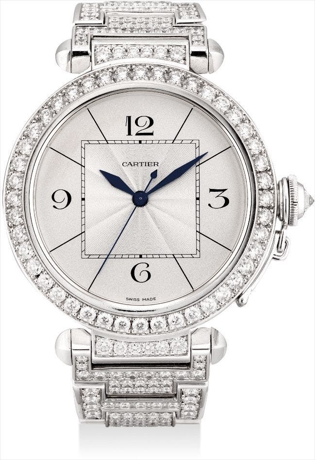 A fine and large white gold and diamond-set wristwatch with sweep centre seocnds and bracelet
