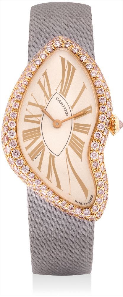 Cartier reissued a limited edition series in the 1990s to celebrate the iconic model. Examples fitted with pink diamonds, such as the present watch, are incredibly rare to come by and among the most exclusive of modern 'Crashes' today.