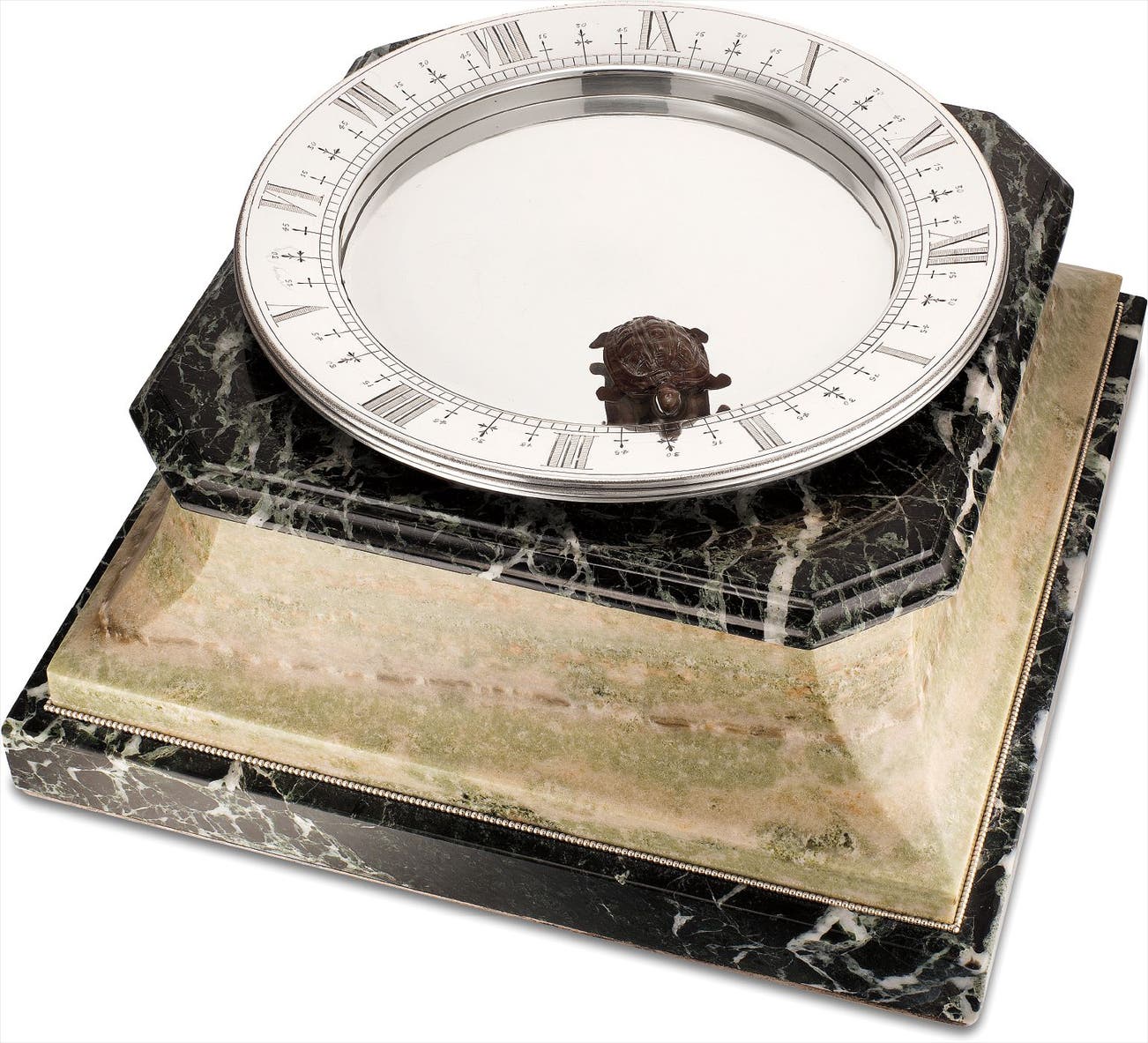 A very fine, extremely rare and unusual silver and marble magnetic floating table clock