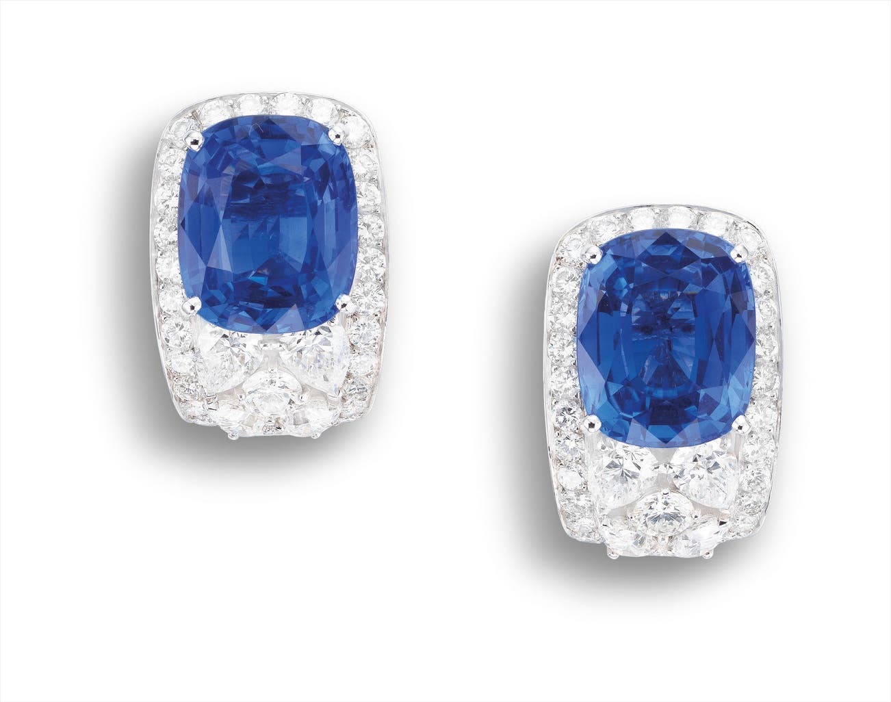 A Pair of Sapphire and Diamond Earclips, Cartier