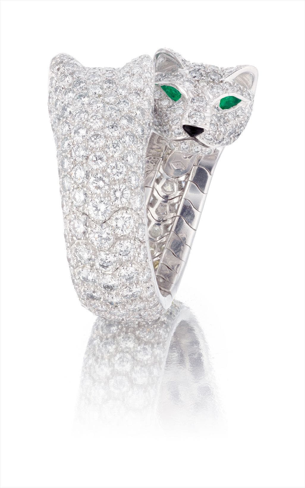 A Rare Diamond, Emerald and Onxy 'Double Panther' Ring, Cartier