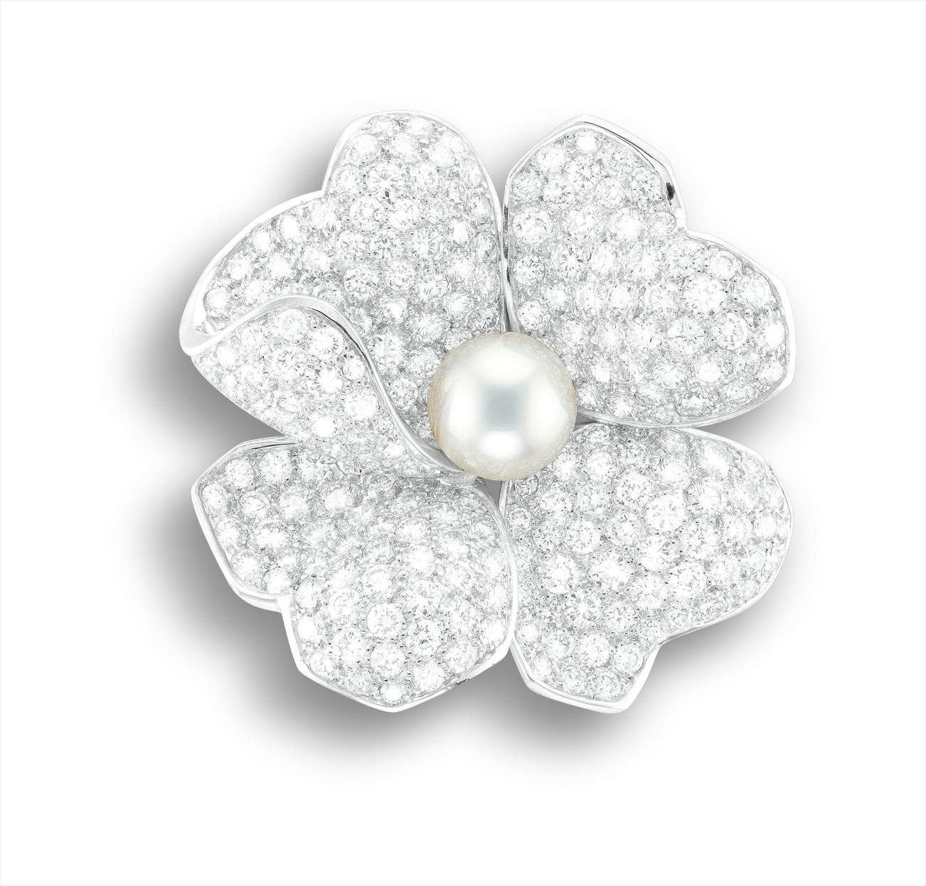 A Cultured Pearl and Diamond 'Flower' Brooch, Cartier