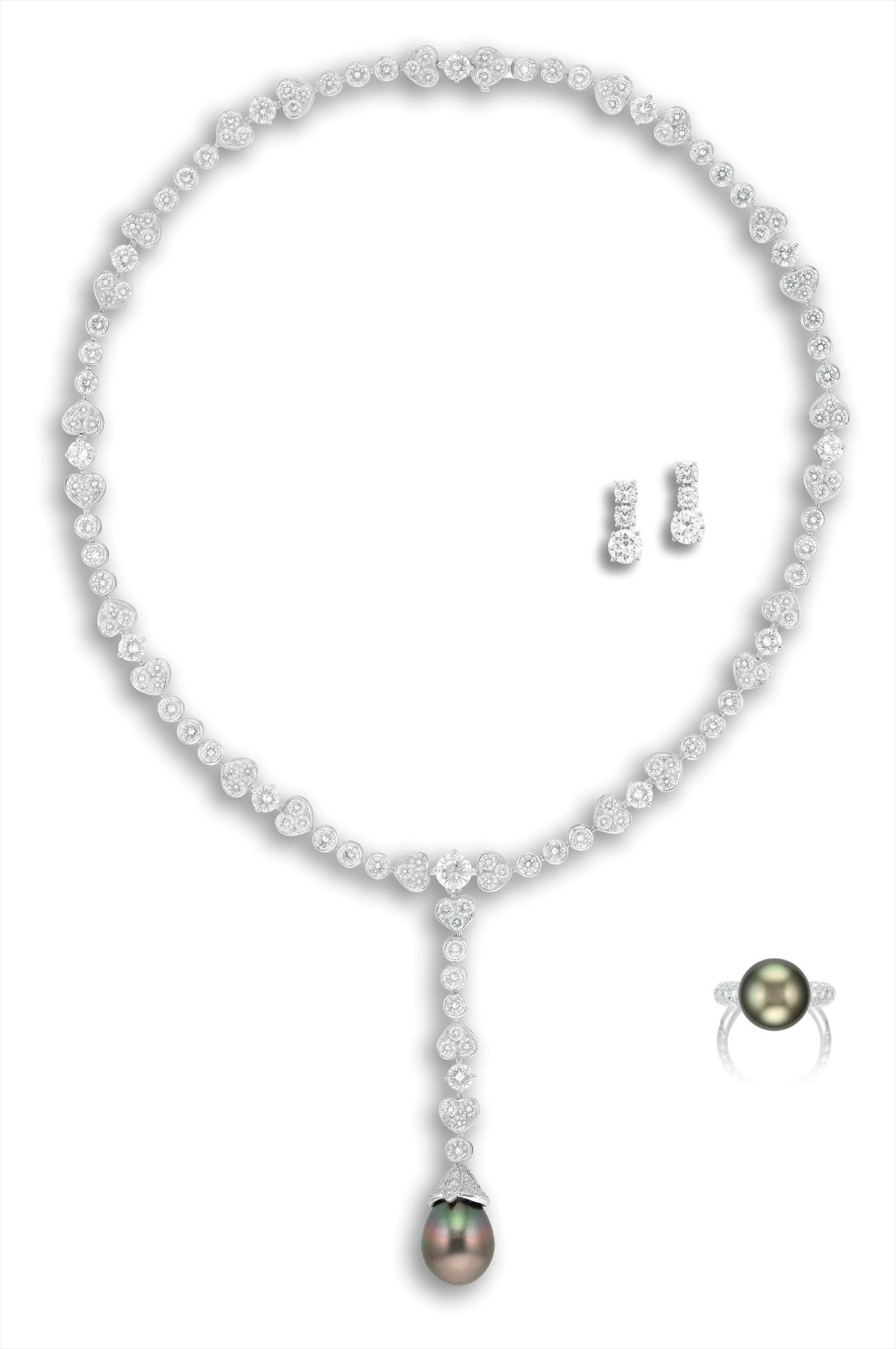 A Tahitian Cultured Pearl and Diamond Demi-Parure, Cartier
