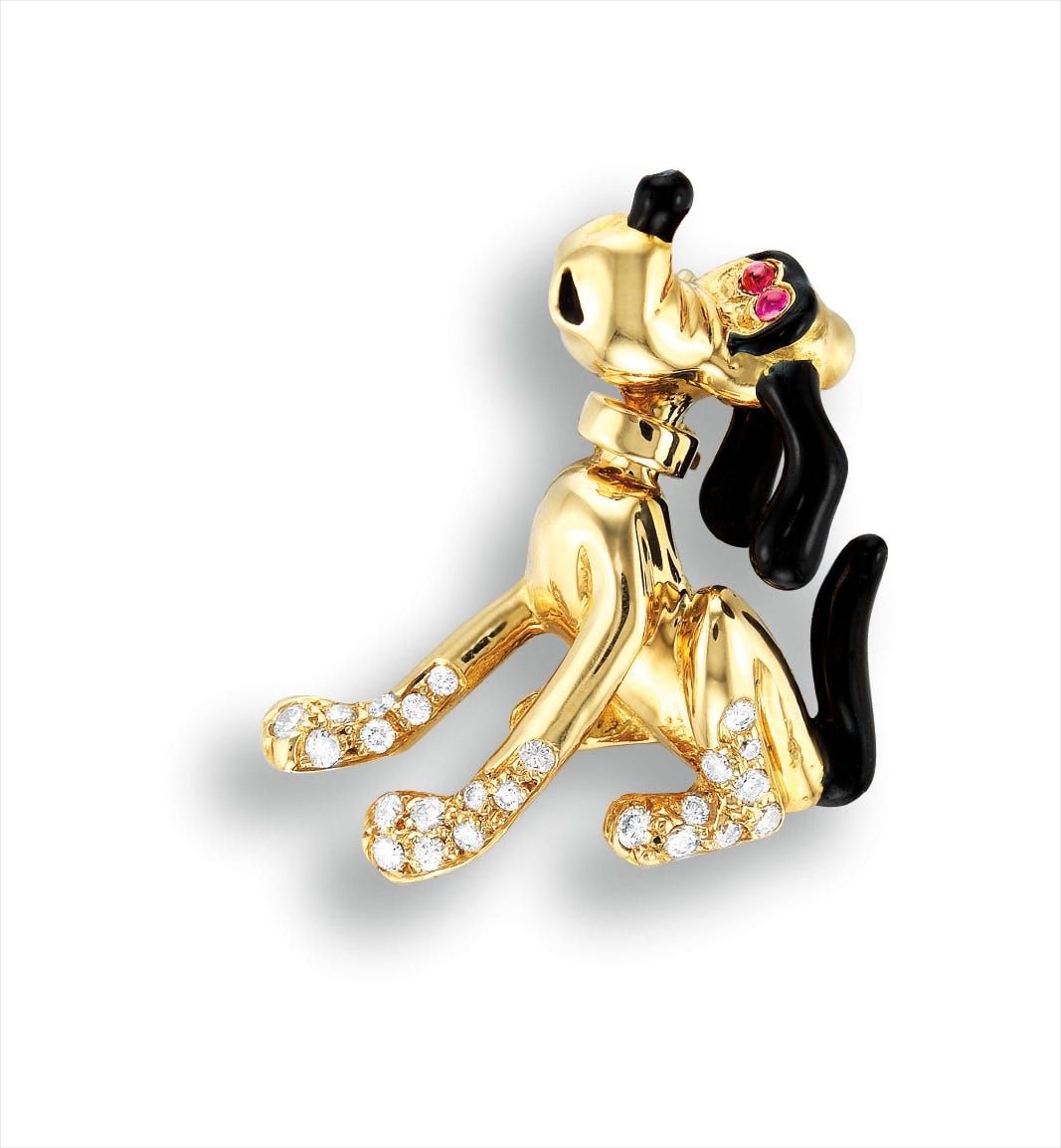 A Whimsical Black Enamel, Ruby and Diamond 'Pluto' Pendant, Cartier